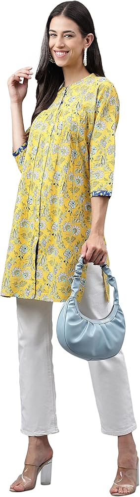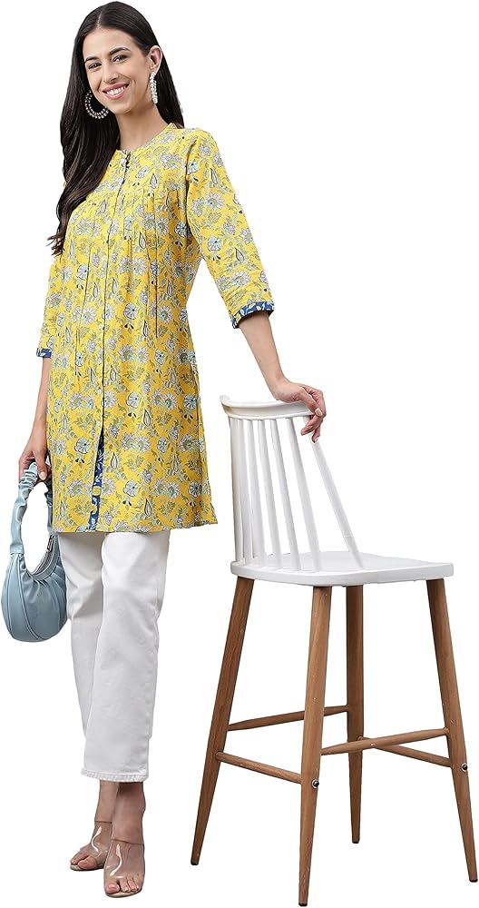 النمط: - الطول: 35 (بوصة) | النمط: طباعة زهور | المناسبة: كاجوال | النوع : إمبراطورية | نوع الكم: 3/4 كم (أكمام عادية) | اللون الأصفر