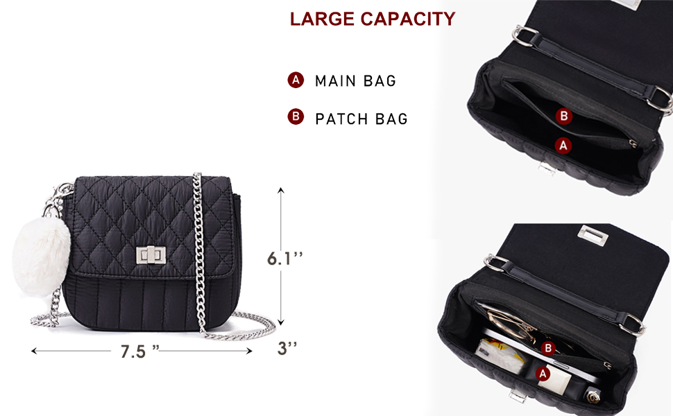 تصميم عصري وعملي: تأتي محفظة الفتيات العصرية لدينا مع حزام سلسلة قابل للتعديل. يمكنك ارتداؤها كحقيبة كروس أو حقيبة كتف. كما أنها تأتي مع قلادة بوم بوم اللطيفة على شكل قلب لتضيف سحرها.