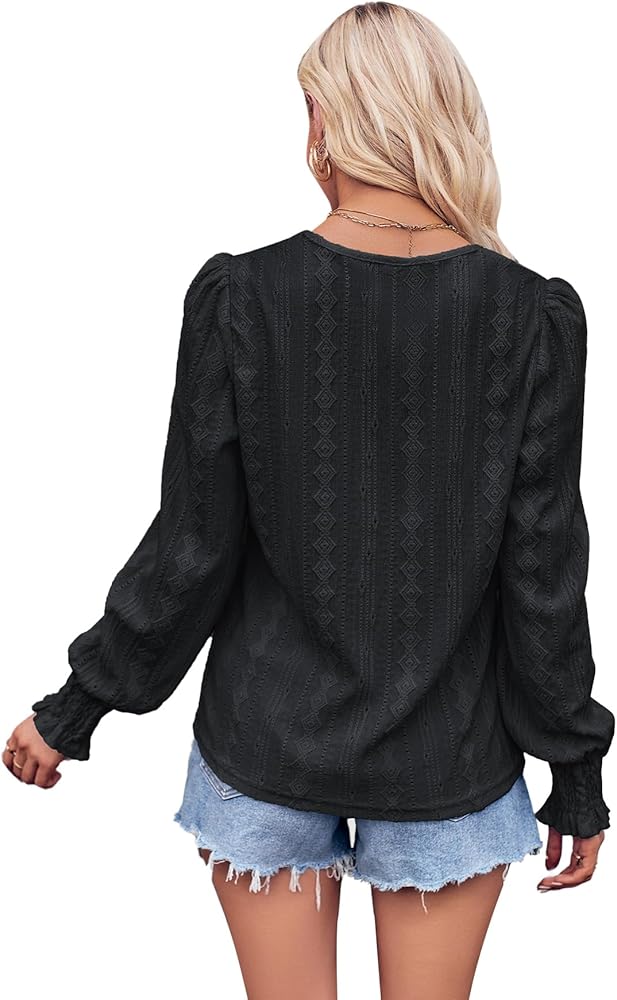 تتميز السويتر المحبوكة للنساء بتصميم رقبة على شكل حرف V وأكمام منفوخة، مما يضيف القليل من الأناقة واللطيفة عند الخروج.