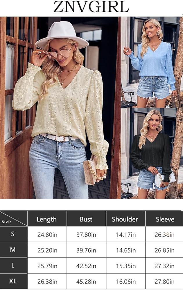 بلوزة نسائية باكمام طويلة كاجوال بيسيك من زد ان في جيرل، قمصان فضفاضة لطيفة وخفيفة الوزن