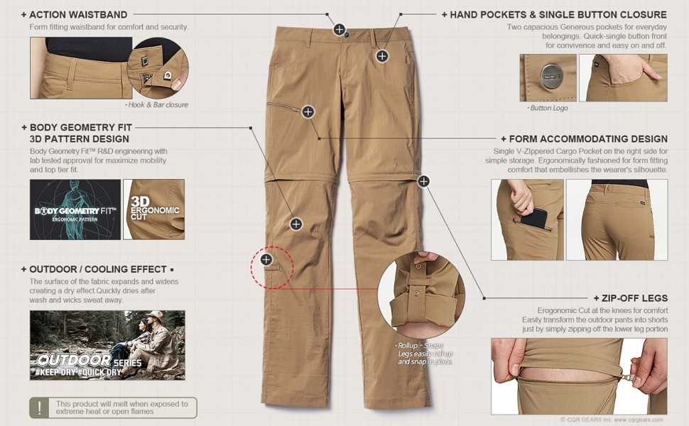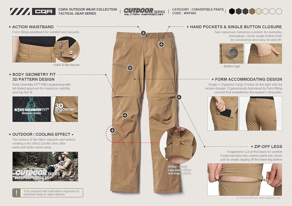 - سلسلة السراويل القابلة للتحويل CQR مصممة لجميع الأنشطة الخارجية والرياضة.