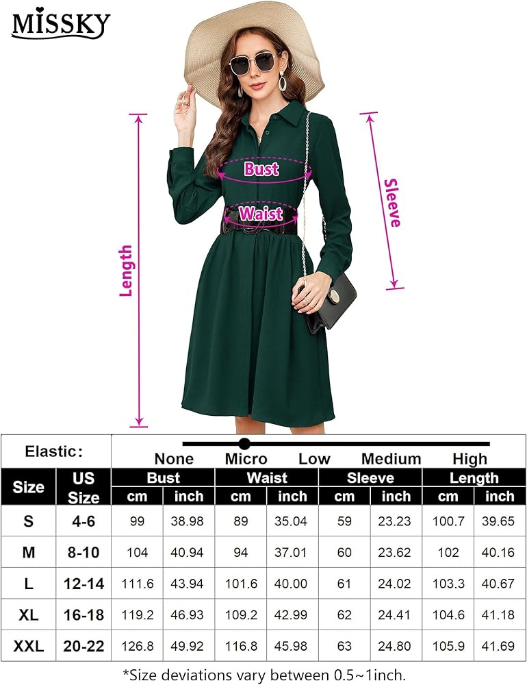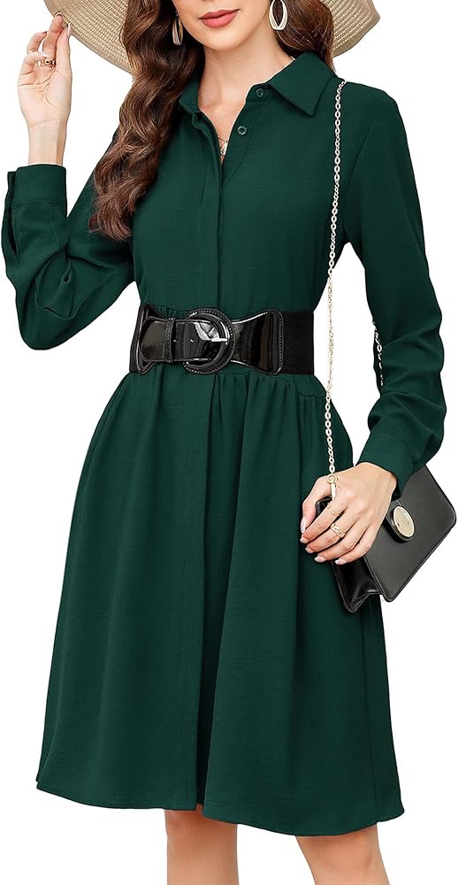 محتويات العبوة: 1x فستان + 1x حزام. فستان بياقة البولو للسيدات صديق للبشرة. هي مادة ناعمة ومسامية وانسيابية للبشرة وسهلة العناية بها. فستان متوسط الطول بأكمام طويلة يبدو رائعًا عند ارتدائه، وأكمام طويلة، ولون موحد، وقصة ضيقة، ونمط على شكل حرف A. جميل ومجاملات الشكل. مثالي للارتداء في العمل والكنيسة.