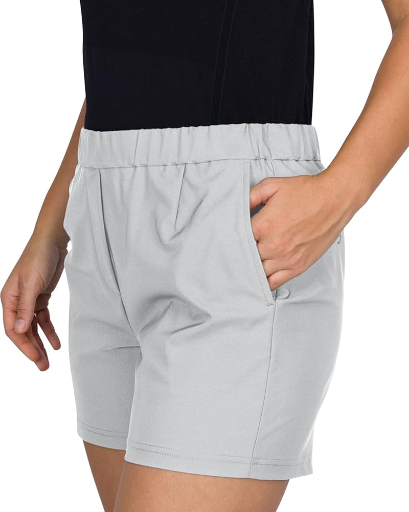 QUICK DRY FABRIC: Stay cool and dry with these moisture wicking golf shorts. Made of 90% Polyester and 10% Spandex, these womens shorts absorb and wick perspiration at lightning speed.