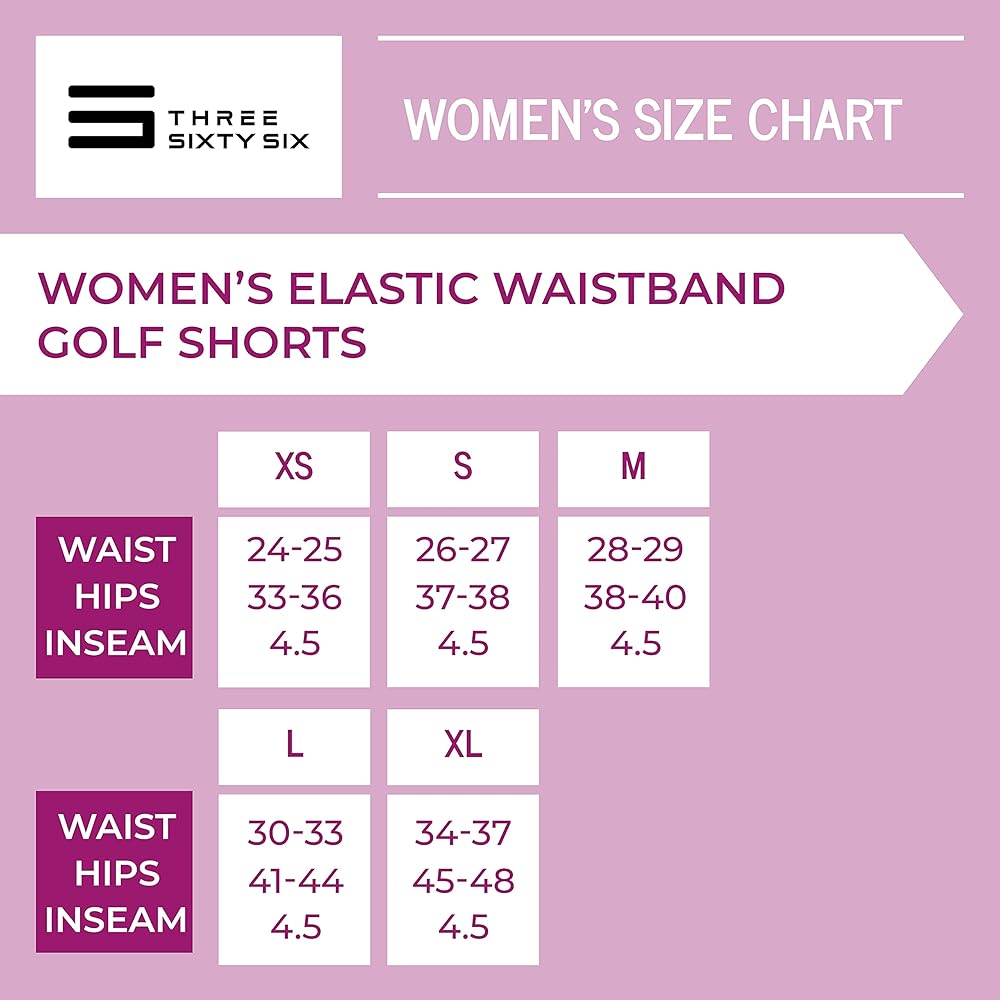 Enjoy the perfect round of golf in these Three Sixty Six golf shorts for women! We don't sacrifice fashion or function with our lightweight women's golf clothing. Comfort and wicking sweat away is a high priority for each style of our apparel we develop. Wear our girls' fitness shorts on and off the golf course. Designed to give you an edge from the tee box to the green. Made with 4-way stretch fabric that allows you to get a full range of motion for the perfect swing. Each pair of shorts is made with a comfortable elastic waistband. Enjoy using both the front and back pockets of our shorts for conveniently storing small items. Our women's athletic attire is designed to help achieve your best performance on the course.