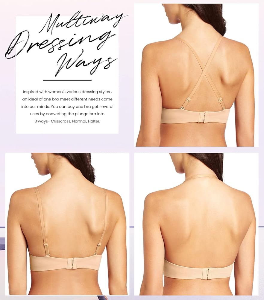Front deep-u-plunge center sits lower than the normal bra, open wide and deliver you a neat and frontless silhouette with your sexy deep v, low-cut dresses and tops.