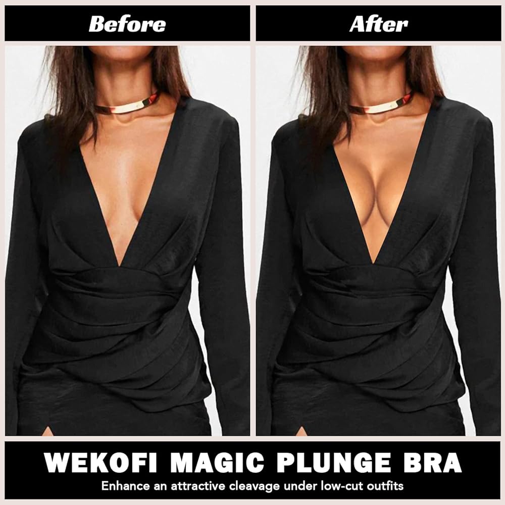 Let every women get rid of the embarrassment of underwear leaking, we design the Wekofi deep plunge brassiere. U-plunge neckline featuring with wire in the center and low-back design, perfect match with deep v, plunge and low-back dresses and top.