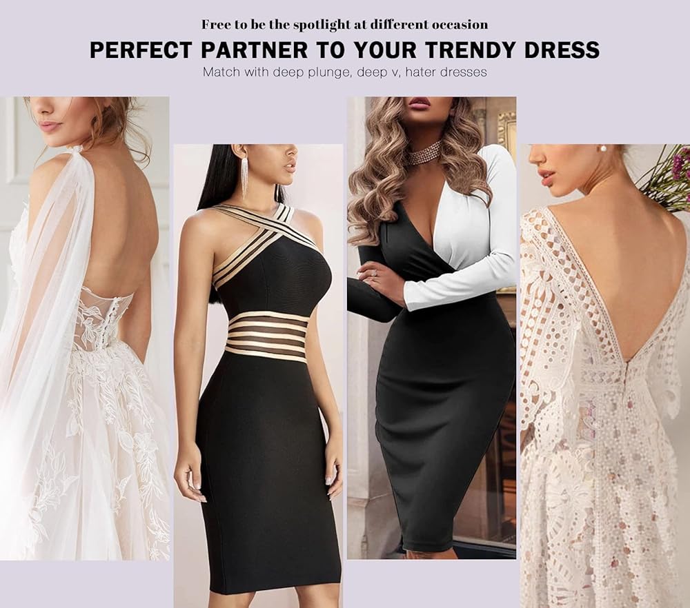 The plunge and low-back design are intended for your frontless, low-cut, deep v, plunge outfits. Suit for various occasion like weddings, prom, different theme parties, banquets, ceremony, special day with your loved one, dating and hanging-out night.