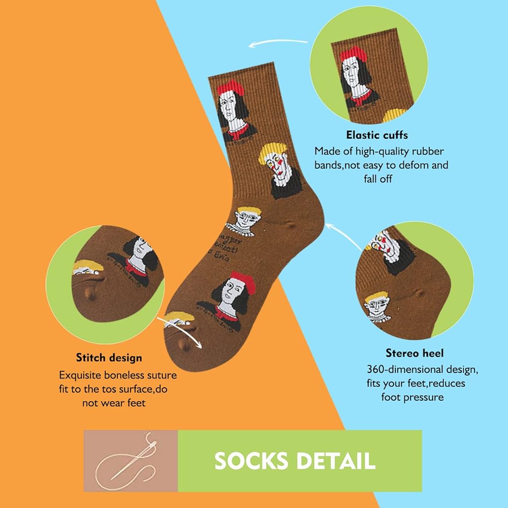 HIGH QUALITY FUNNY SOCKS - These are made of combed cotton and elastane. Normal thickness, suitable for wearing all year round.High performance fabrics keep you dry, moisture wicking and sweat wicking fabrics stay warm in cold temperatures and cool when temperatures rise. Lightweight, flexible, breathable, not limited by movement.