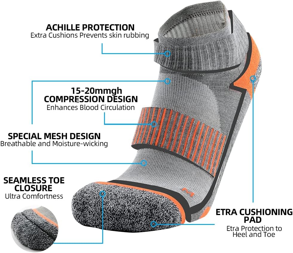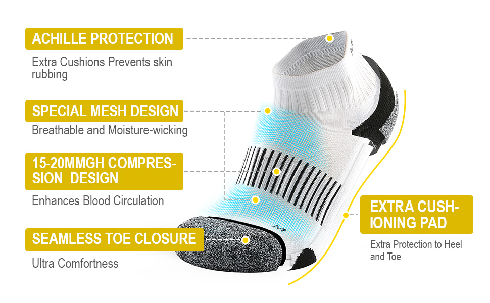 ✅حماية ضد البثور: نقوم بتكثيف بعض المناطق على الجوارب للحصول على دعم مخصص للوسائد، يمكن لهذه الوسادات السميكة أن توفر أفضل حماية من البثور مع الحفاظ على أفضل قدرة على امتصاص الرطوبة.