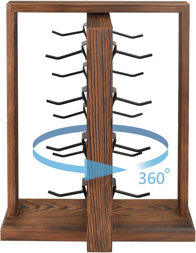 رف عرض مجوهرات دوار خشبي على الوجهين من Ikee Design مع 136 أخاديد و16 خطافًا معدنيًا قابلاً للإزالة للقلائد والأساور وسلاسل المفاتيح وحامل عرض الأقراط للبائعين، لون بني
