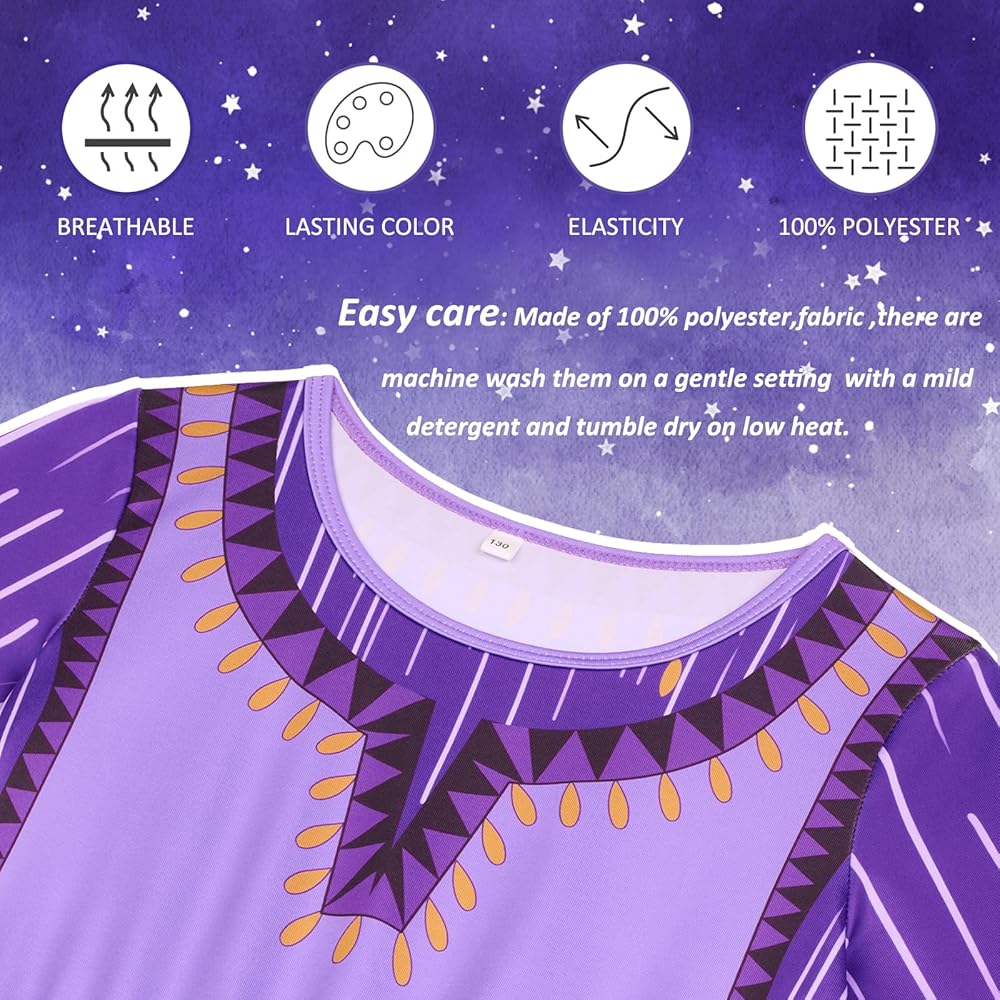 🧍🏽♀️قماش زي الأميرة آشا: بوليستر عالي الجودة، ناعم ومسامي، مطبوعات رائعة، تستعيد الأزياء الرائعة من الأفلام.