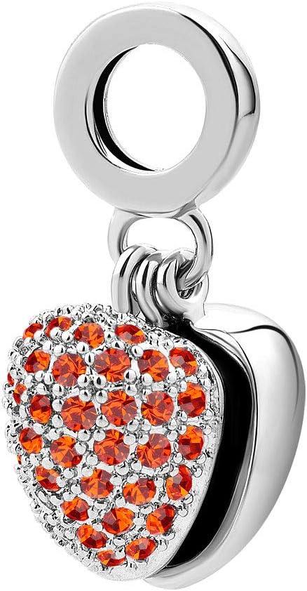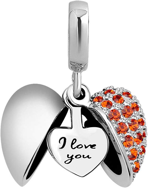 Sterling Silver I Love You Heart Birthstone Charm Dangle Bead For Bracelet