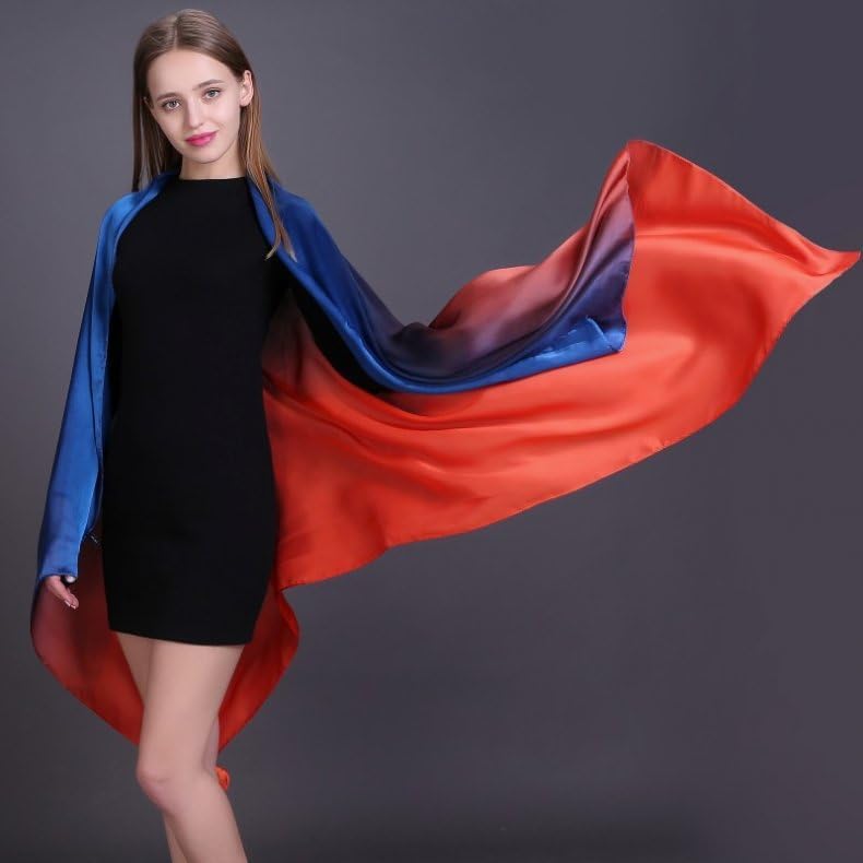 لافت للأنظار: لون أنيق. وشاح حريري مصبوغ صديق للبيئة، يمكن استخدامه كوشاح أو شال. مثالي للاستخدام على الشاطئ وغرفة تكييف الهواء كشال، ومناسب لجميع المناسبات مثل الحفلات والسفر والارتداء اليومي.