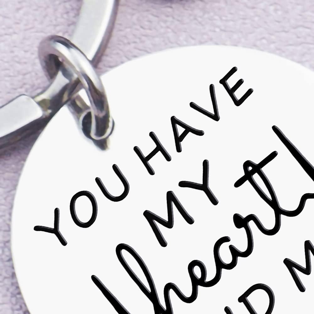 المواد: الفولاذ المقاوم للصدأ، لا يبهت، لا يصدأ، الحجم: 28*50 مم/1.18*1.96 بوصة (تقريبًا)؛ هدية رائعة ومثالية تتضمن العبوة: 1 * سلسلة مفاتيح You Have My Heart and My Ass السوداء