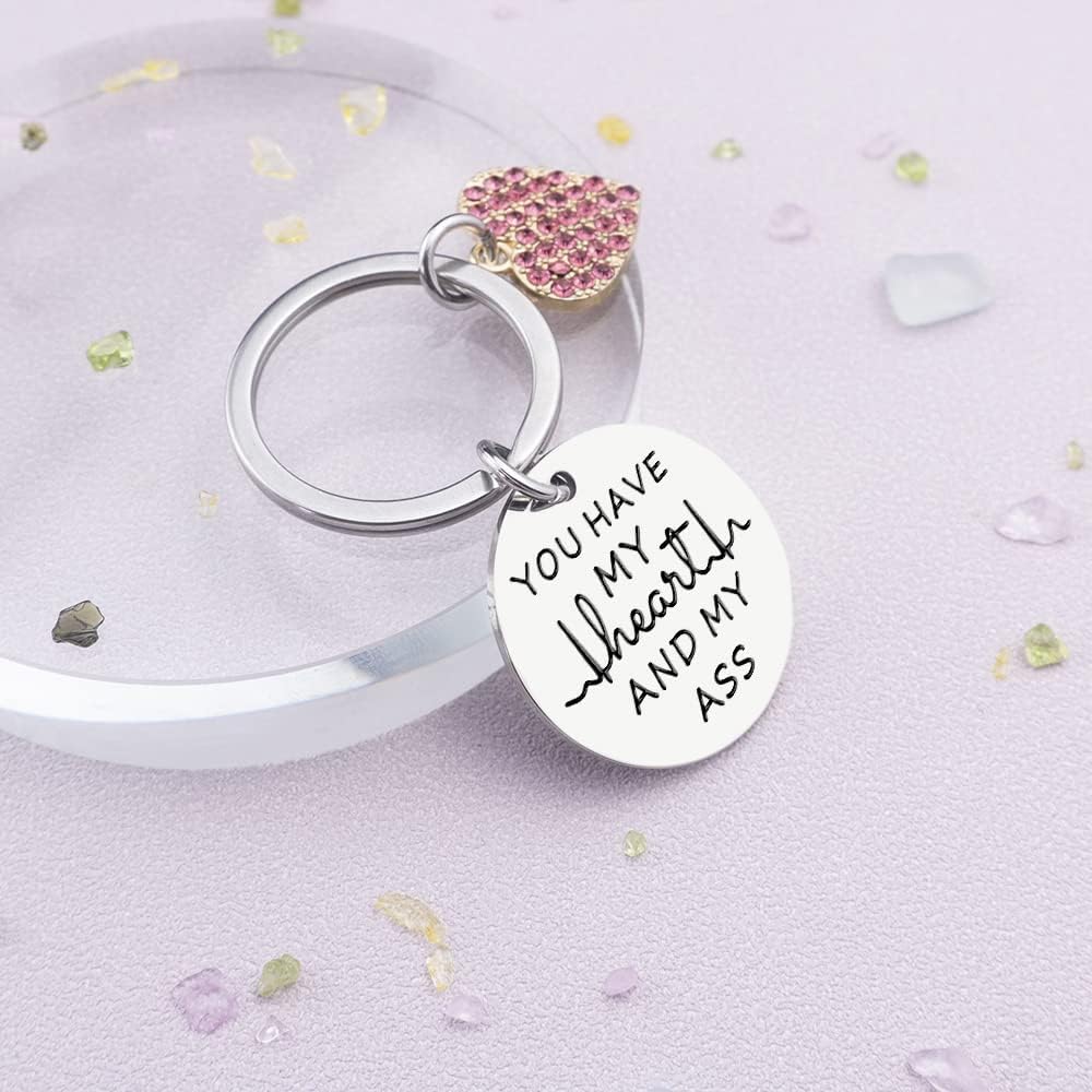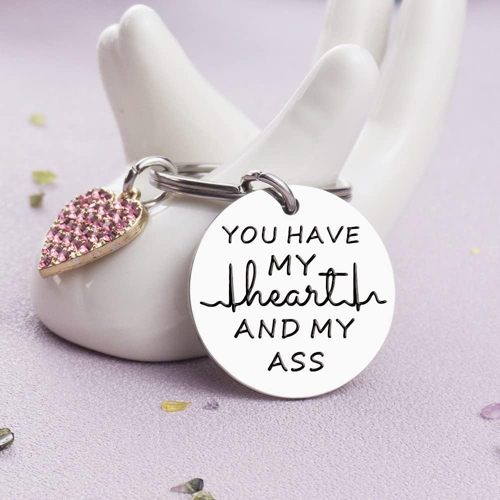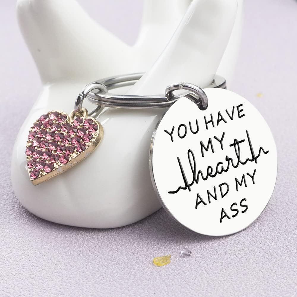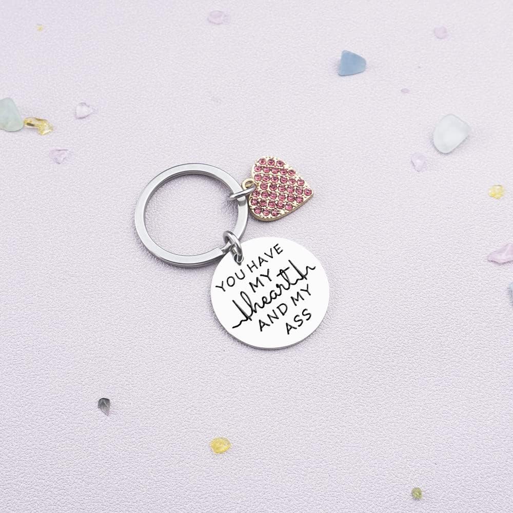 هدية عيد الميلاد كهدية مرحة: سلسلة مفاتيح You Have My Heart and My Ass؛ إذا كنت تريد أن ترسم الابتسامة حتى تضحك على الشخص الذي تحبه، فيرجى عدم تفويت هدية الكمامة المضحكة، ستكون مفاجأة كبيرة لجميع الرجال والنساء الذين هي مضحكة ولطيفة ...