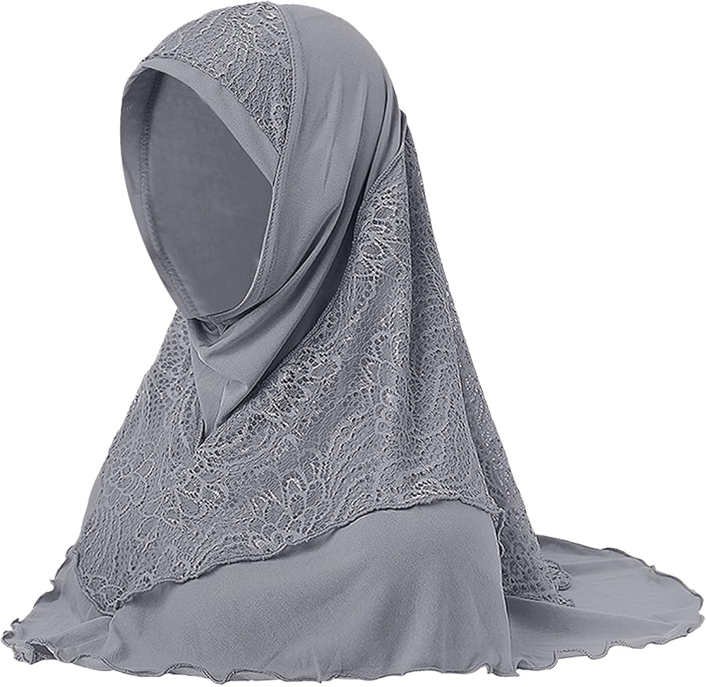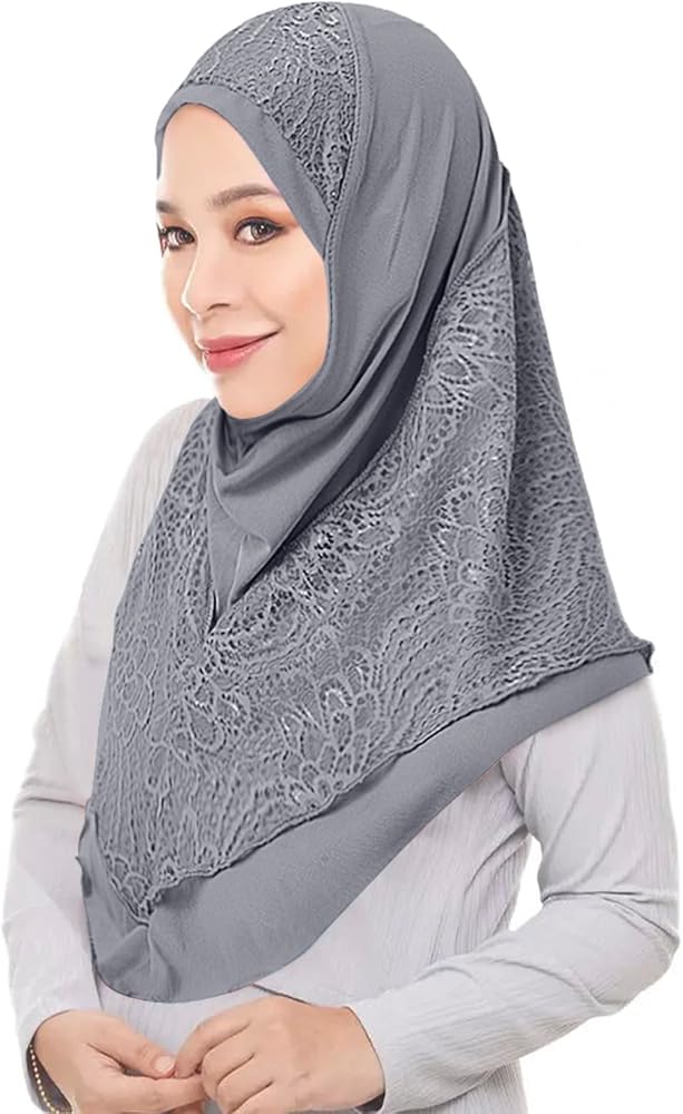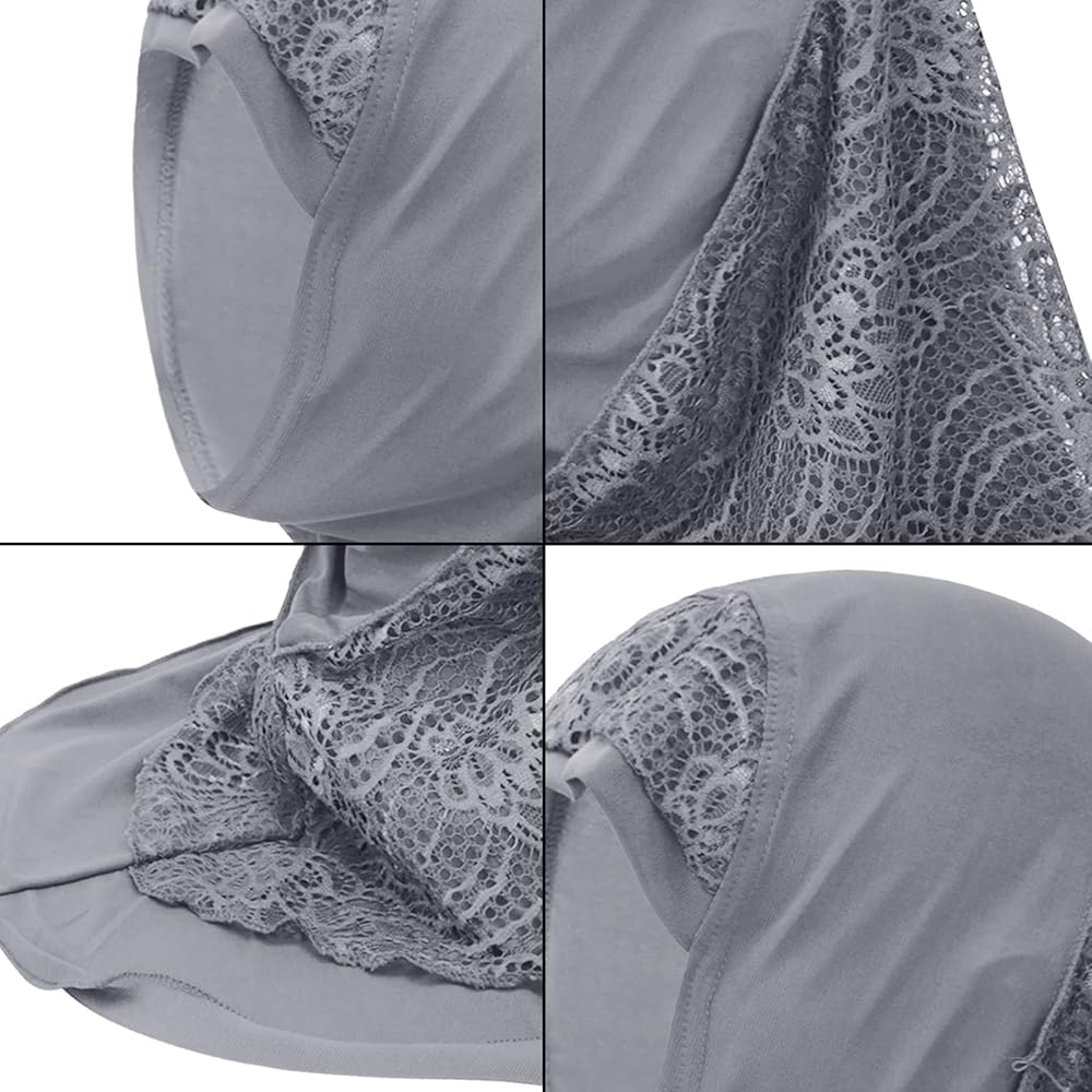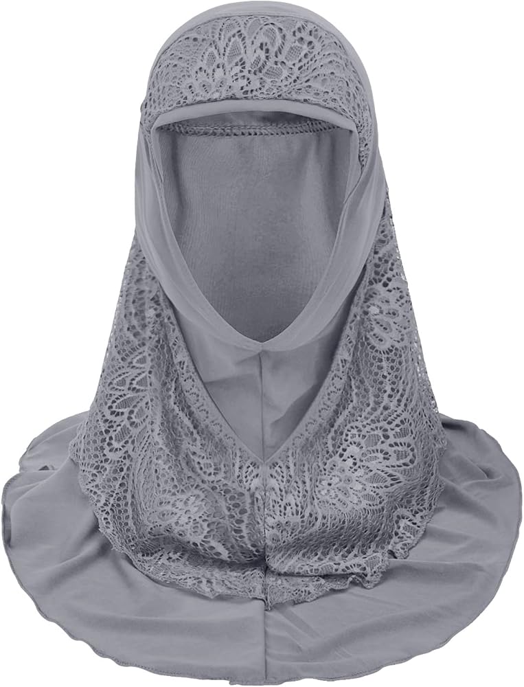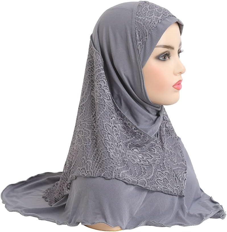 ❤FASHION: Solid color decored with lace on forehead and around neck of this fashion muslim hijab, elegant and chic,one piece ready to wear, suitable for muslim women, hair loss, indian, mother or used as daily decor.