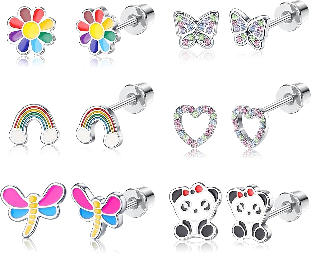 【مجموعة أقراط لطيفة】 تتضمن 6 أزواج من الأقراط ذات المسمار الخلفي، و6 أنماط مختلفة من أقراط الأطفال الصغار لتلبية احتياجاتك المختلفة. هناك أقراط على شكل فراشة، وأقراط على شكل زهرة، وأقراط على شكل قلب، وأقراط على شكل باندا، وأقراط على شكل طاقم النحل. وأزرار الأذن المتلألئة هي طراز كلاسيكي سيحظى بتقدير لسنوات. أنماط مختلفة لتختار من بينها، تلبي جميع احتياجاتك اليومية.