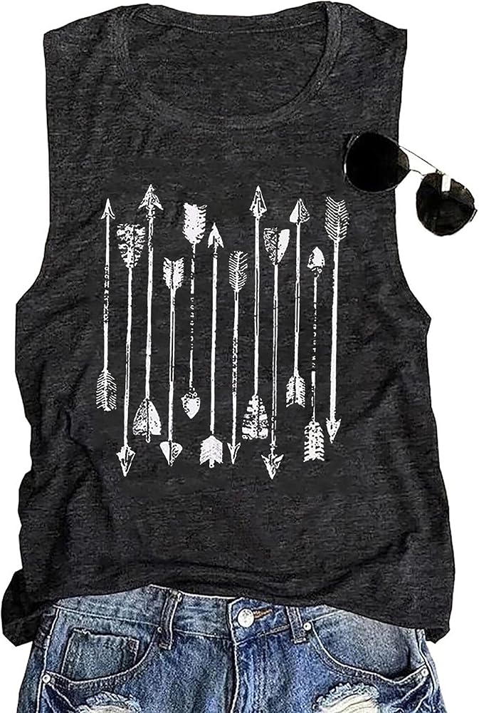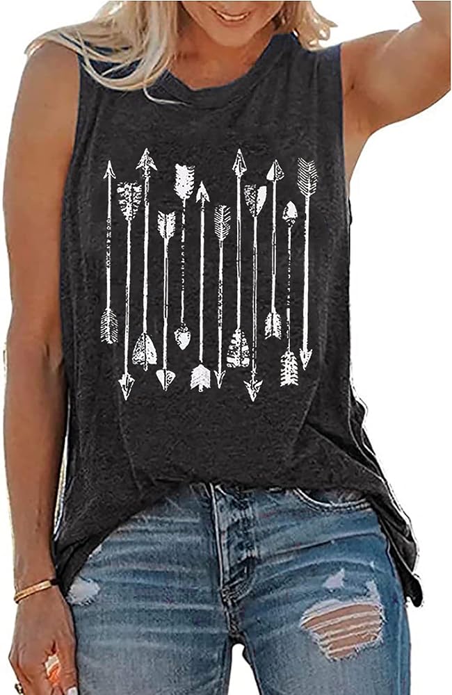 Arrow O-Neck Casual Tanks for Women Cute Graphic Tees Shirts Sleeveless Loose Holiday Vest