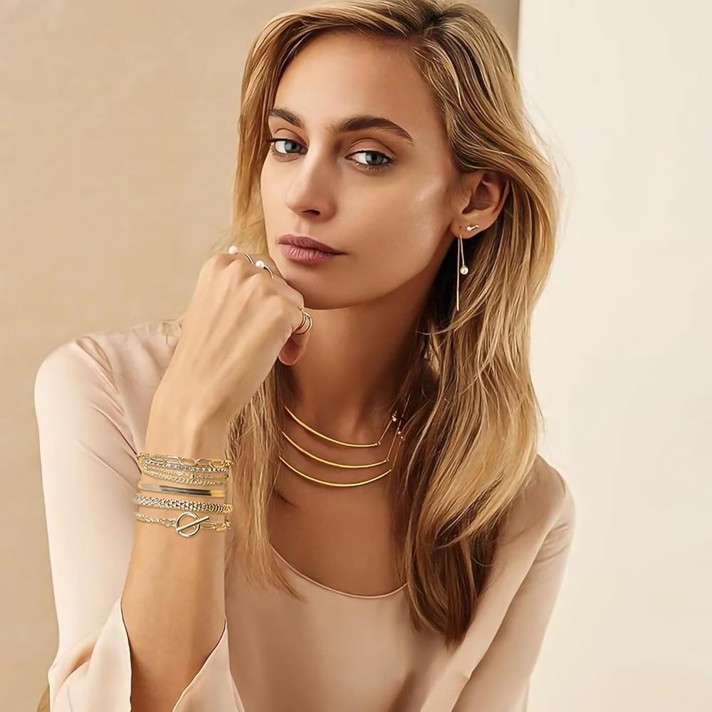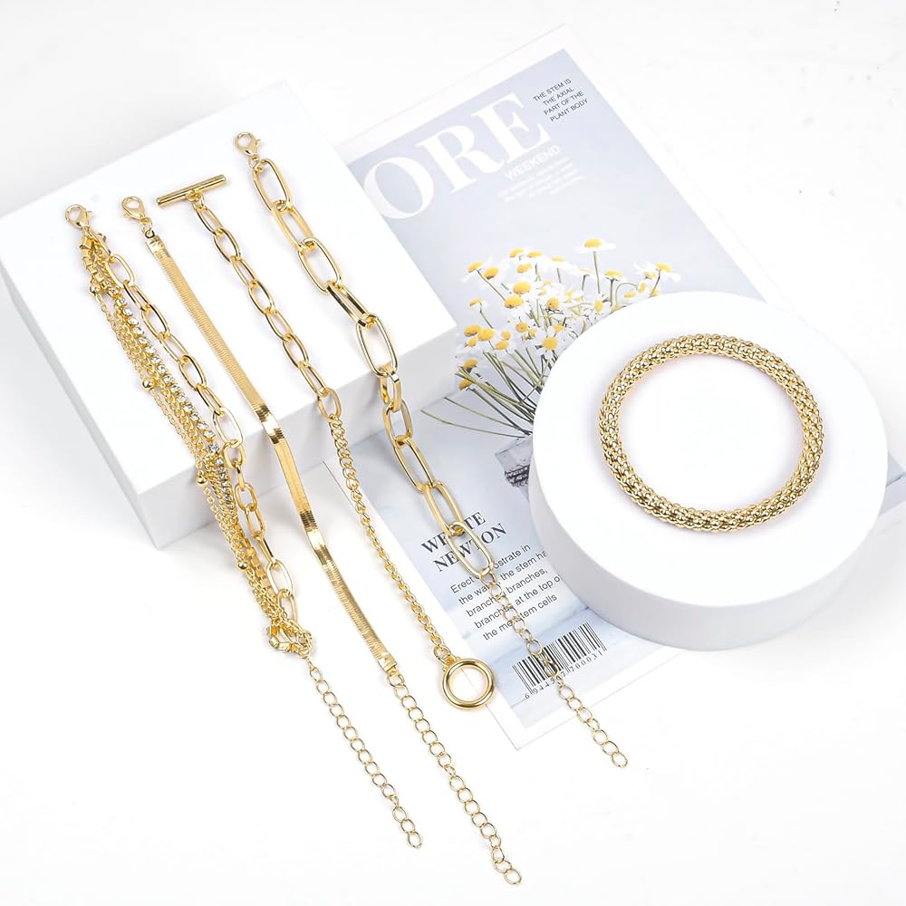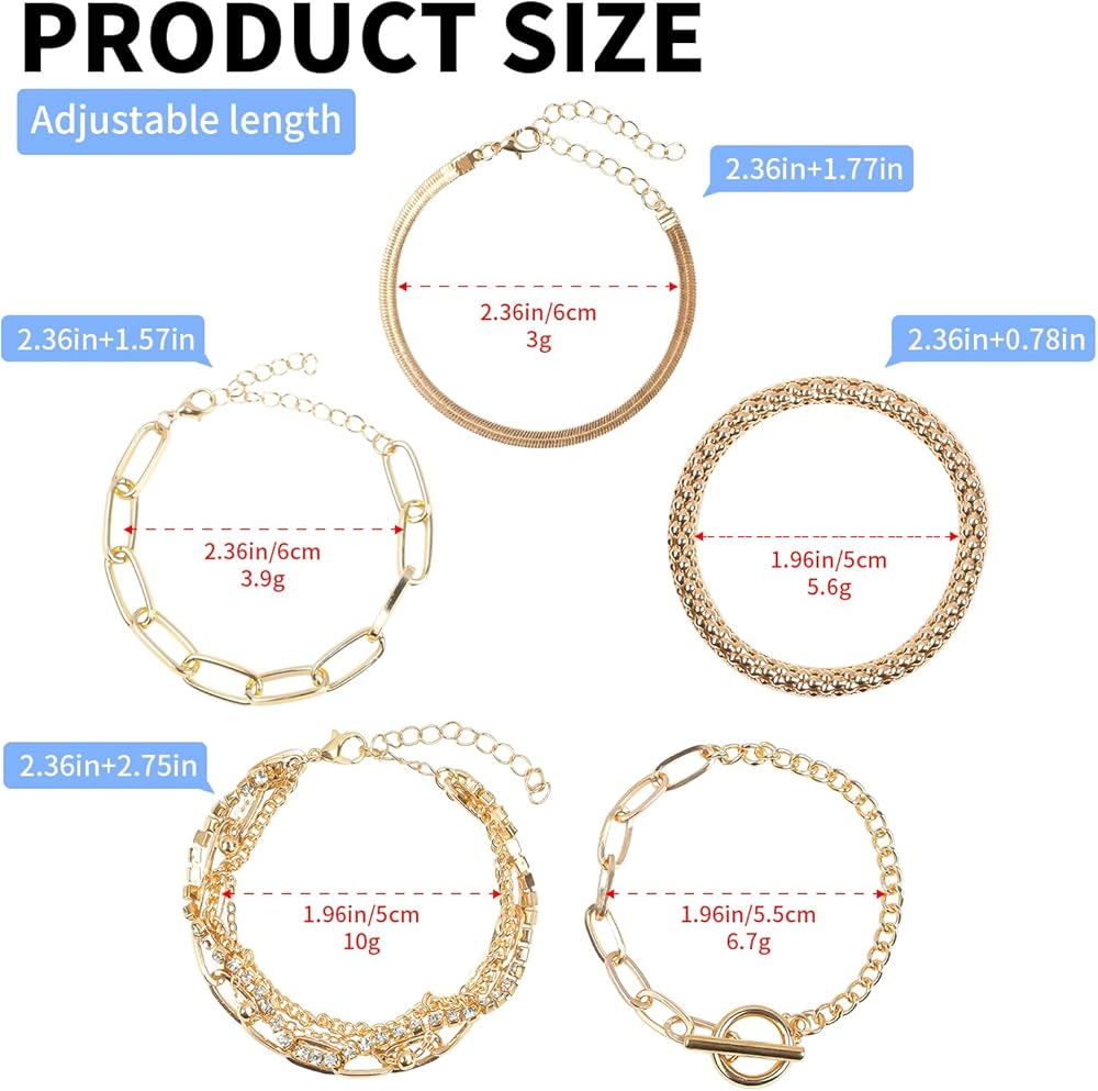 هدية مثالية: مجموعة أساور السلسلة الذهبية هذه هي الهدية المثالية للنساء والأخت والبنات والأصدقاء والزوجة في عيد الحب وحفلات الزفاف والخطوبة والالتزامات والذكرى السنوية وعيد الشكر والكريسماس وعيد الأم وما إلى ذلك.