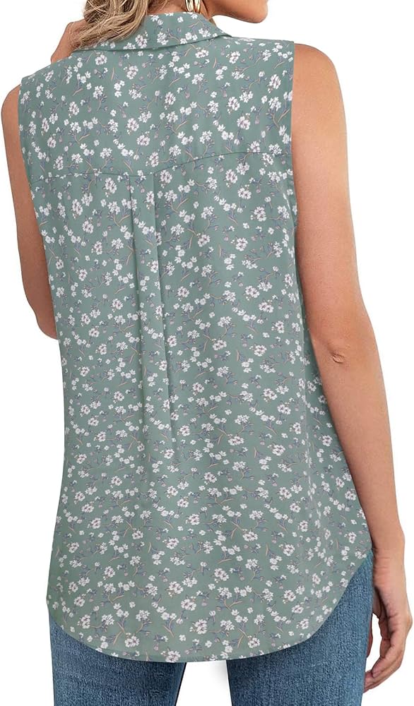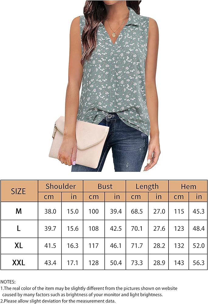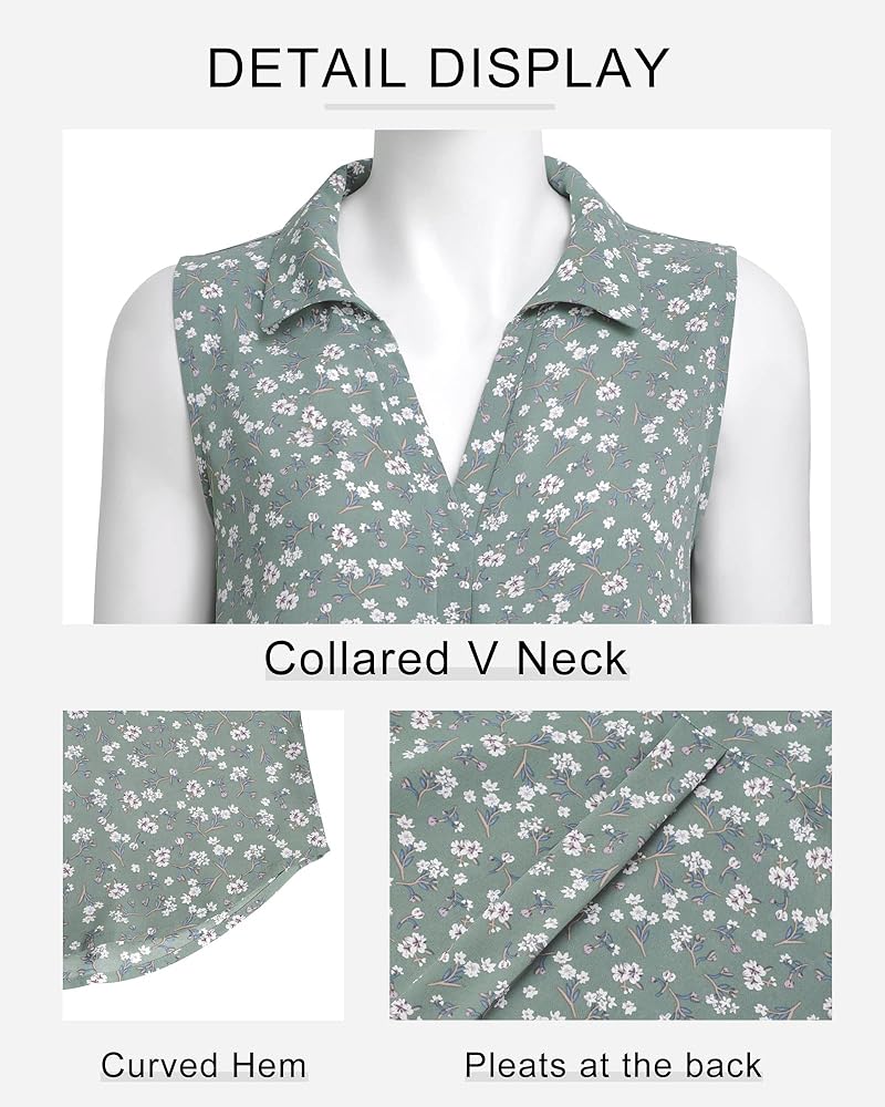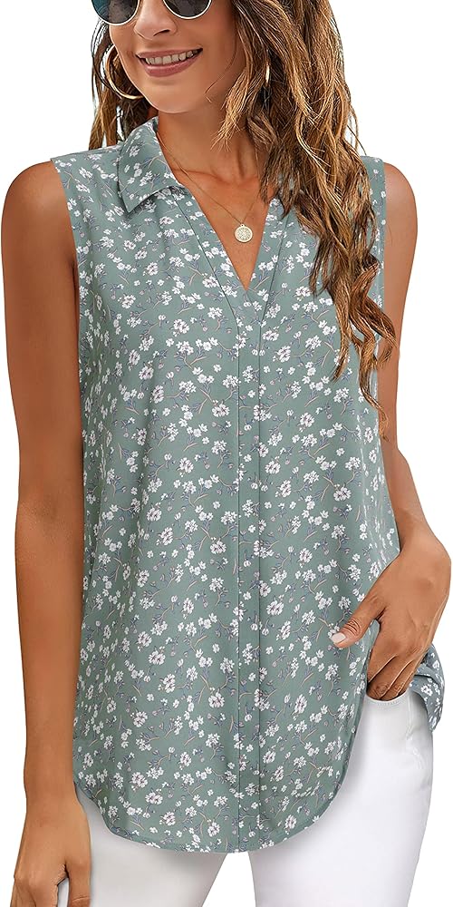 بلوزات Vivilli بدون أكمام للنساء، ملابس عمل للسيدات، قمصان بياقة على شكل حرف V من الشيفون، قمصان عمل للنساء، قمصان عمل للنساء في المكتب الصغار، قمصان قصيرة فضفاضة تناسب متعدد الأخضر XL