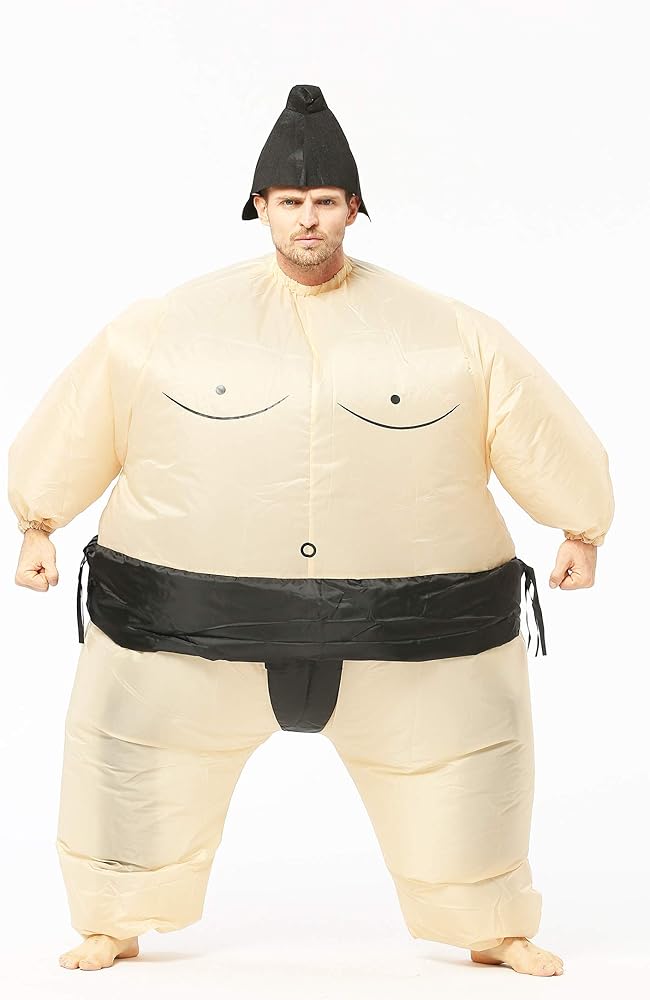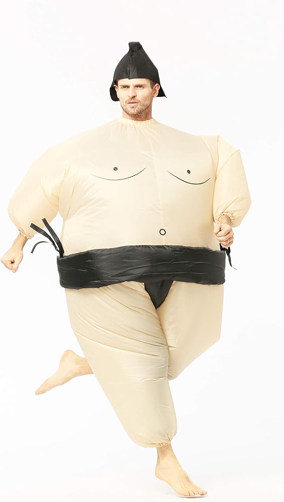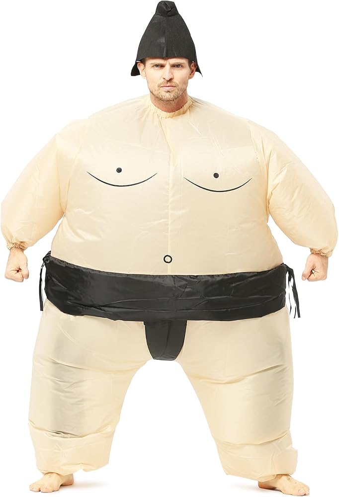 • Design: The inflatable sumo wrestler costume is a hilarious and eye-catching costume, featuring a big belly, a funny headpiece, and long arms and legs that make you look like a real sumo wrestler.