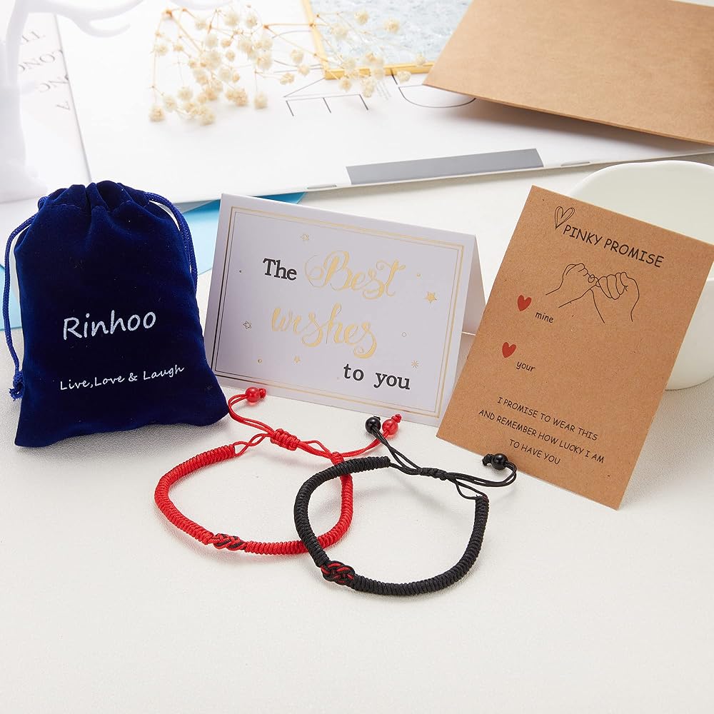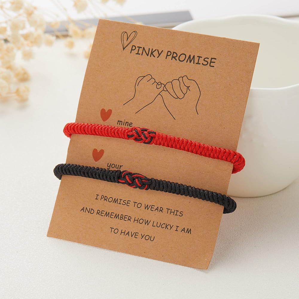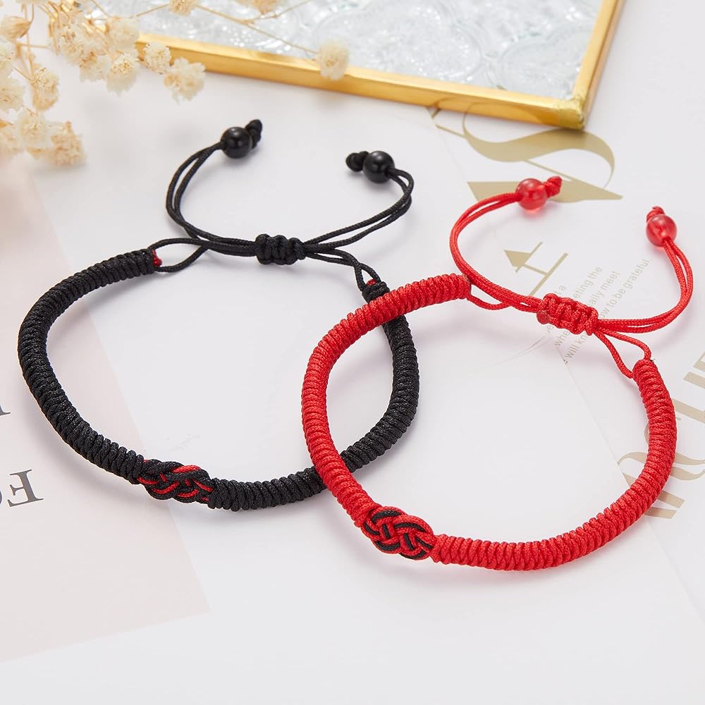 💖سوار للأزواج💖 حبل مضفر مصنوع يدويًا وأساور للأزواج. تمثل السلسلة الحمراء الرومانسية والحظ. أتمنى لك ولحبيبتك السعادة معًا في عام 2022