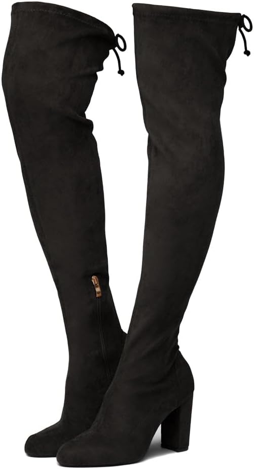 • ملاءمة وأناقة مثالية: أحذية متعددة الاستخدامات تصل إلى الفخذ تتميز بجزء علوي بسيط وأنيق مصنوع من نباتي وكعب منخفض يضيف بعض الكمال لمظهرك. مثالي للمهرجانات والارتداء على مدار العام!