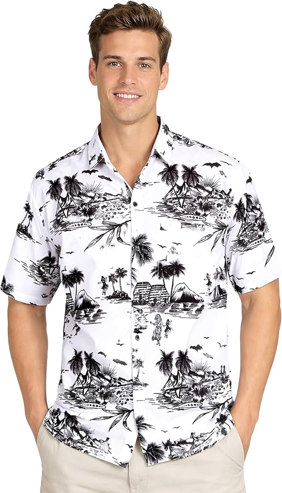 لن تكون قديمة الطراز أبدًا مع مجموعتنا الحصرية للرجال، قمصان هاواي للرجال، مطبوعات الوها الرقمية ثلاثية الأبعاد على كامل الجسم، زهور استوائية نابضة بالحياة ونخيل