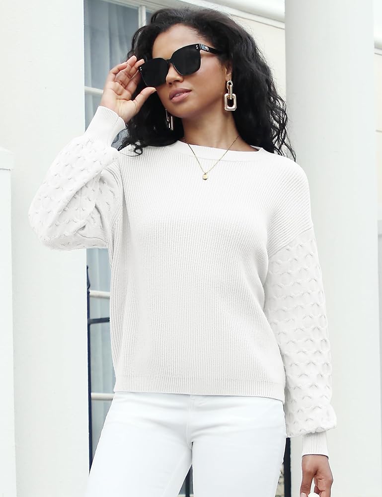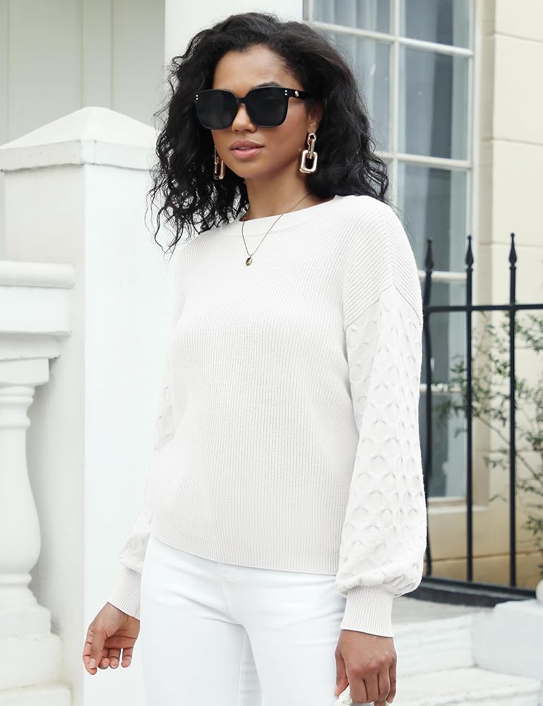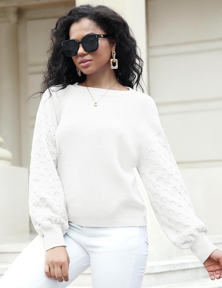 تصميم عصري: تستخدم هذه السترة أكمام على شكل قرص العسل لإضافة لمسة من اللطف والأناقة، كما أن تصميم السترة المحبوكة ذات الرقبة المستديرة أكثر أساسية وسخاء. النمط الفضفاض مناسب لأي نوع من أنواع الجسم تقريبًا، وأكثر راحة في الارتداء ويسهل ملاءمته مع مجموعة متنوعة من إطلالات الموضة.