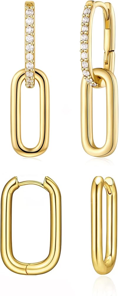 • 📌 زوجان من الأقراط الحلقية الذهبية: تتميز هذه الأقراط الحلقية الذهبية الجميلة بتصميم مربع كلاسيكي مع تصميم مزدوج فريد يمنح مظهرك لمسة نهائية مثالية قبل الخروج من الباب.