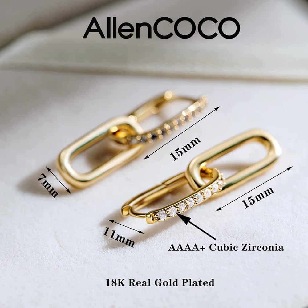 • 📌 المادة: أقراط حلقية مستطيلة مطلية بالذهب عيار 14 قيراط: لمسة نهائية مصقولة للغاية تجعلها لامعة ولا تبهت أو تصدأ. ولا تسبب الحساسية وخالية من النيكل والرصاص.