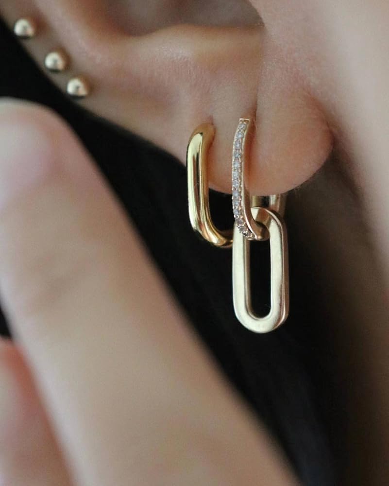 • 📌 التصميم: مستطيل فريد على شكل حرف U مع مشبك مرن، سهل الارتداء والخلع. شراء مثالي لأقراط هاجي الحلقية. إضافة مثالية لمظهر يومي.