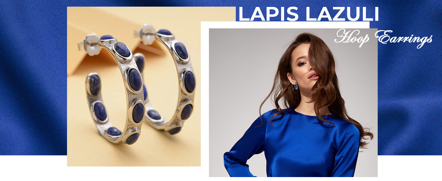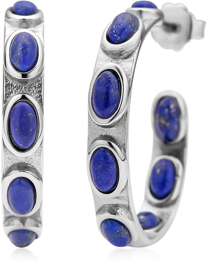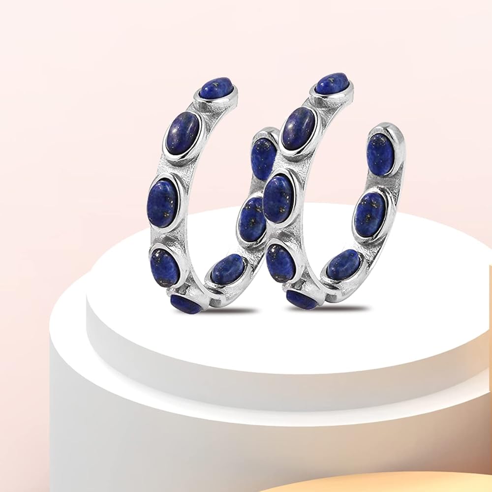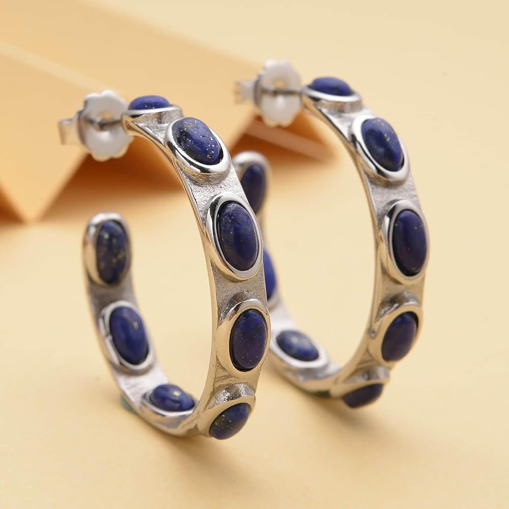المقاس: أقراط دائرية كلاسيكية بسيطة على شكل حرف J من الأحجار الكريمة الطبيعية من حجر اللازورد الكريم بقياس 30 ملم (1.25 انش).