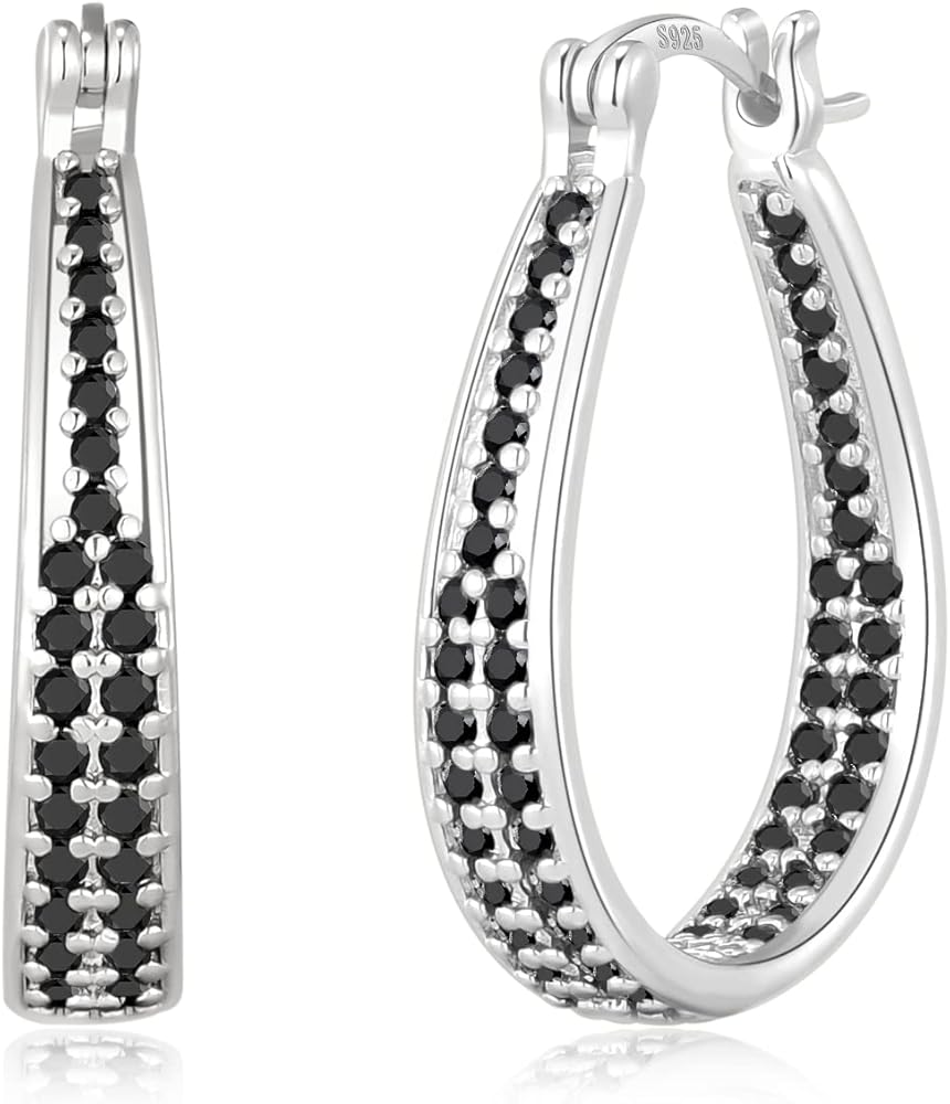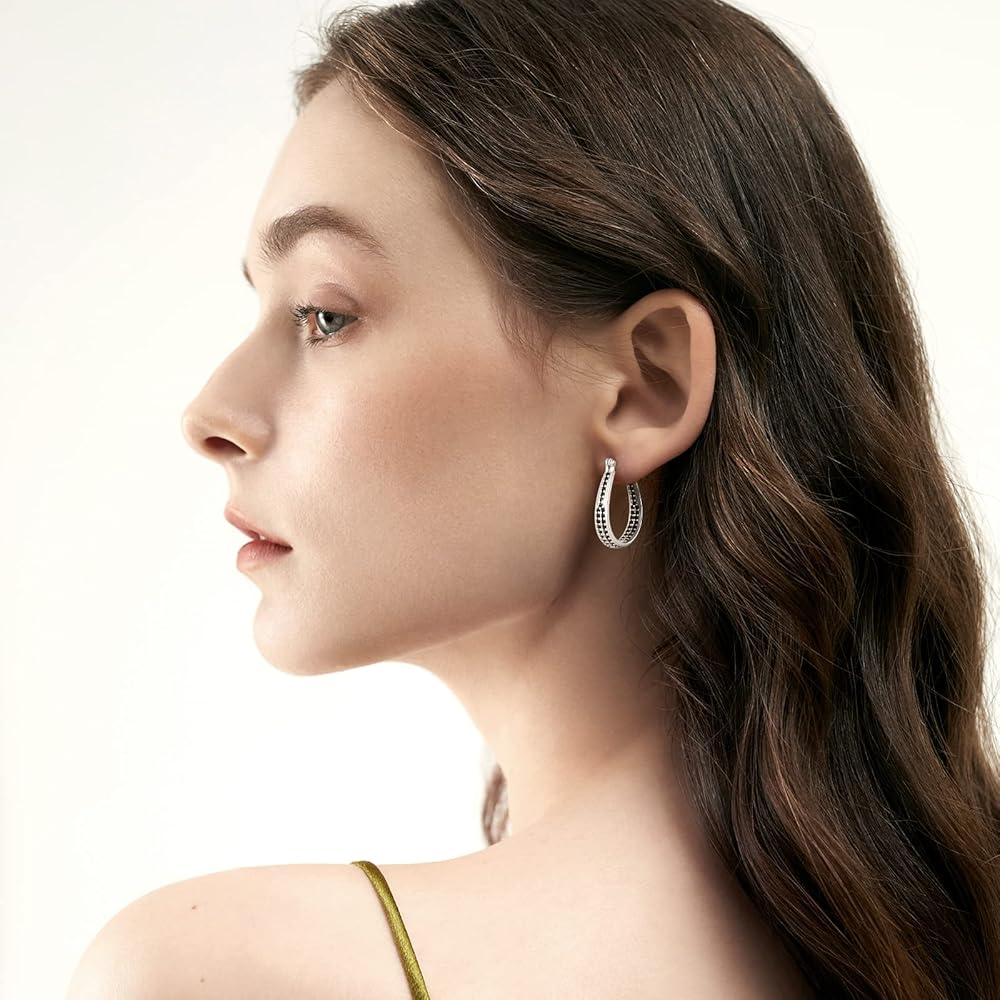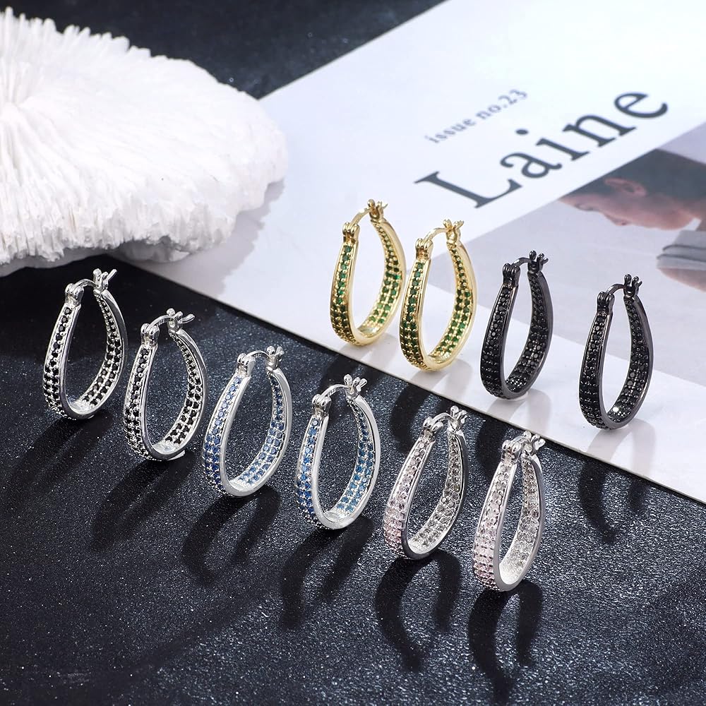 【جودة عالية】: تم تصميم هذه الأقراط البيضاوية المصنوعة من الفضة الإسترلينية بشكل بيضاوي ومصنوعة من النحاس عالي الجودة، وهي مرصوفة بزركونيا مكعب 5A. زركونيا مكعب لامع مختلف عالي الجودة ولون الفضة الإسترلينية يجعل هذه الطوق الملتوية ساحرة بشكل خاص.