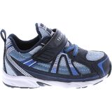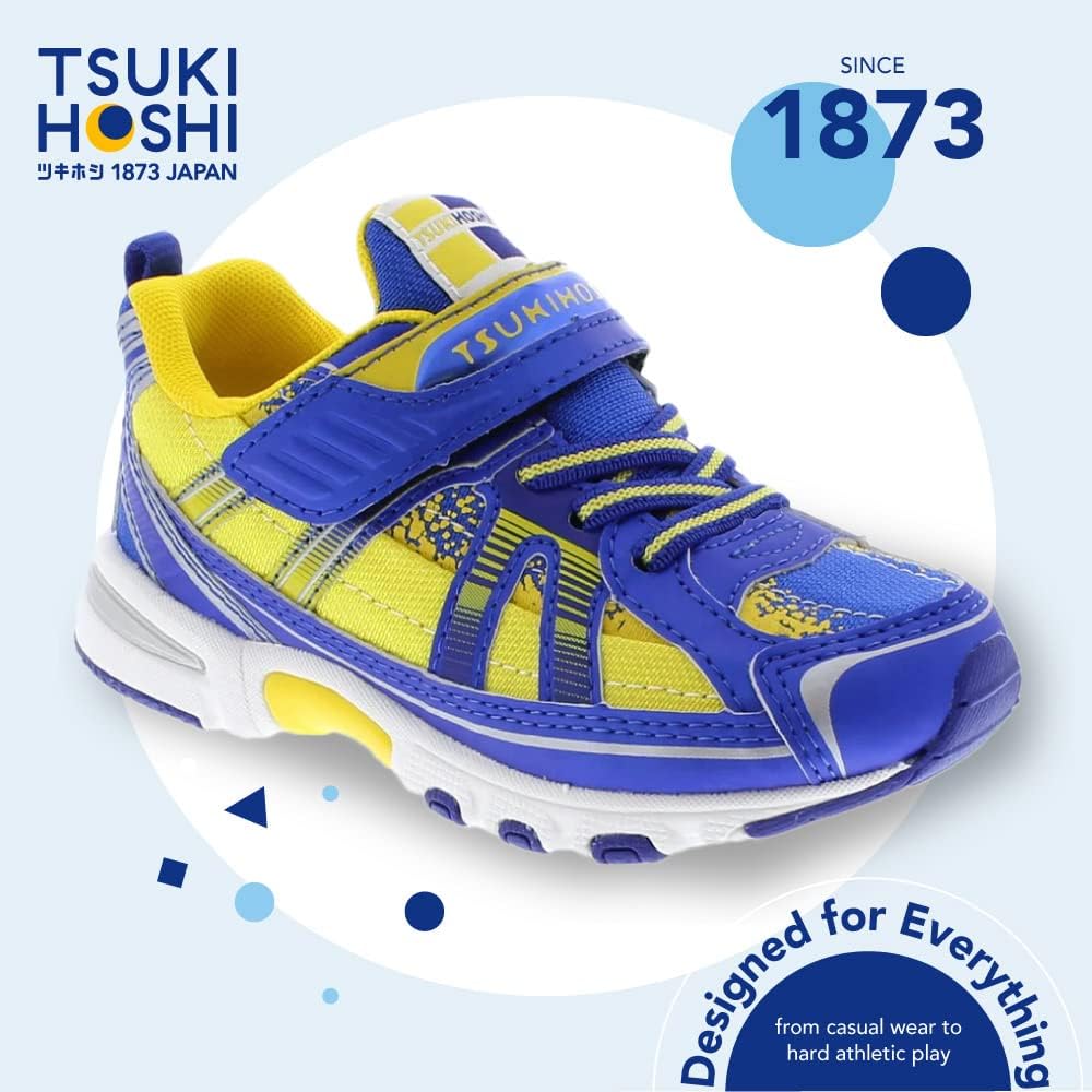 "In 1873, two shoemakers opened a shop to make ""Tabi shoes,"" a traditional Japanese minimalist moccasin or sock-shoe that allows feet to flex and maintain tactile contact with the ground. They named their company Tsukihoshi. Over 140 years later, Tsukihoshi still specializes in made-for-play children's shoes that allow freedom to move and grow and breathe. Tsukihoshi makes all its shoes with extra toe-box width so that toes can splay, stretch, and wiggle, boosting children's sense of balance and contributing to healthy arch development and bone alignment as they grow. Trust the name brand that stands for healthy kids with healthy feet. The Tsukihoshi STORM Baby Sneaker is an infant and toddler shoe designed for everything from casual wear to hard athletic play. This adorable sneaker is available in a variety of cute and cool color schemes, including black and blue, red and gray, silver and navy, and blue and orange. Great for either the infant learning to walk or the eager toddler learning sports, this baby tennis shoe features a non-slip, non-marking outsole. It provides both outdoor traction for running at the playground and indoor traction that won't scuff your home's hardwood floors or your gym's basketball court. The STORM baby shoe is easy to put on or take off thanks to its convenient rear finger loop and a hook-and-loop strap closure that provides a nice, snug fit. Combining fashion and function, its vivid colors are designed to survive cold-water machine washing so that your boy or girl can play in the dirt. A durable abrasion-resistant upper holds up to hard use. An all-natural green tea insole keeps odors in check without harsh chemicals. Remove insole before washing and allow to air dry. The Tsukihoshi STORM Baby Sneaker is a play-hard shoe designed for infants and toddlers aged 0-4."