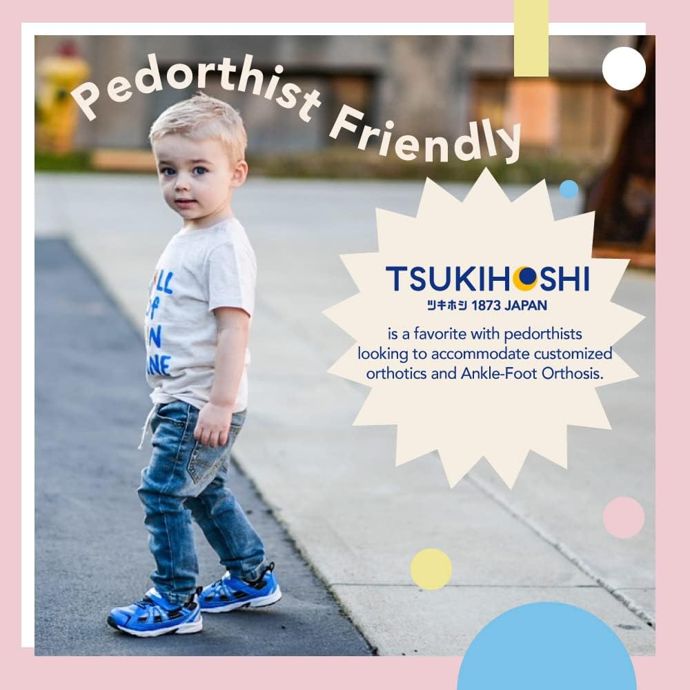 Pedorthist Friendly – With its removable insole, long counters, and child-specific patterns, Tsukihoshi has become a favorite for Pedorthists looking to make modifications to accommodate customized orthotics and/or AFOs