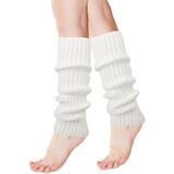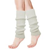 meioro 2Pcs Women and Girl's Leg Warmers, Neon Ribbed Leg Socks, 80's 90's Women Knit Leg Warmers, Fashion Stylish Boot Socks for Party Accessories, Yoga, Winter Knee High Socks(White)