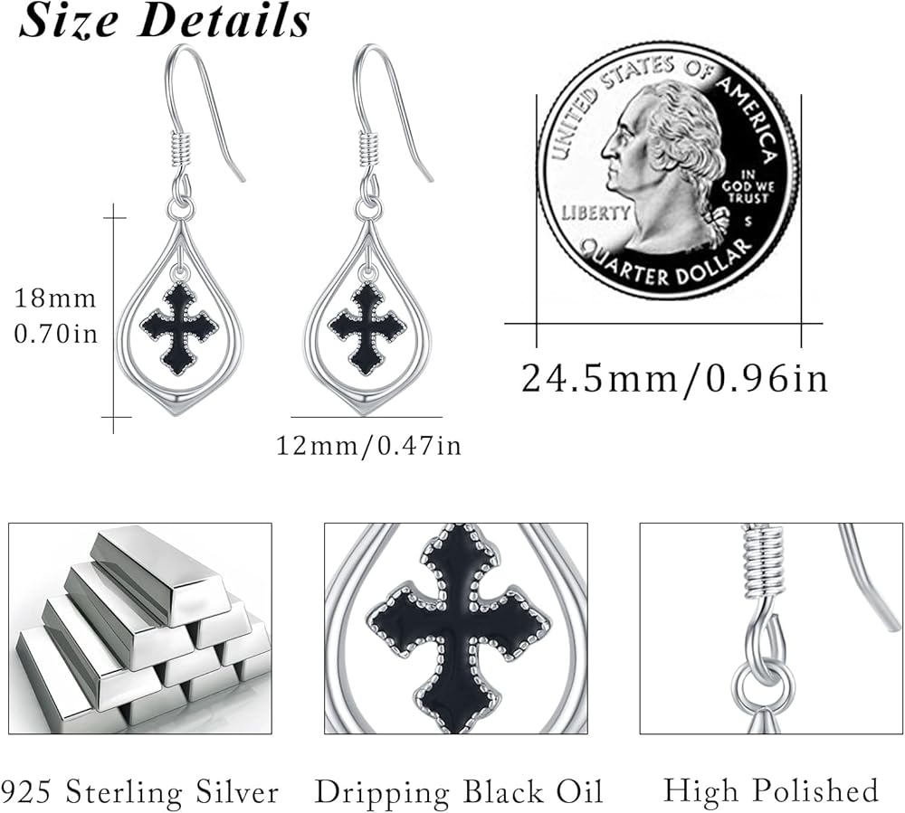 • 【Sterling Silver Cross Earrings】Beautiful cross earrings are made from high quality 925 sterling silver; hypoallergenic and ideal for those with sensitive ears. The cross drips with black oil, has a beaded edge design and fine workmanship, adding a more noble and fashionable feel to the earrings, making them suitable for any occasion.