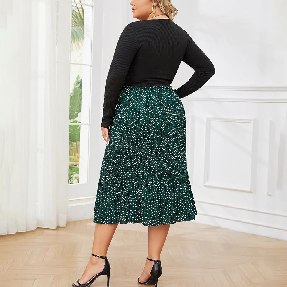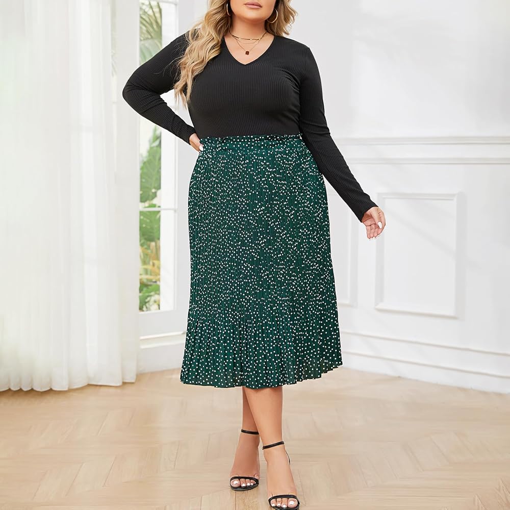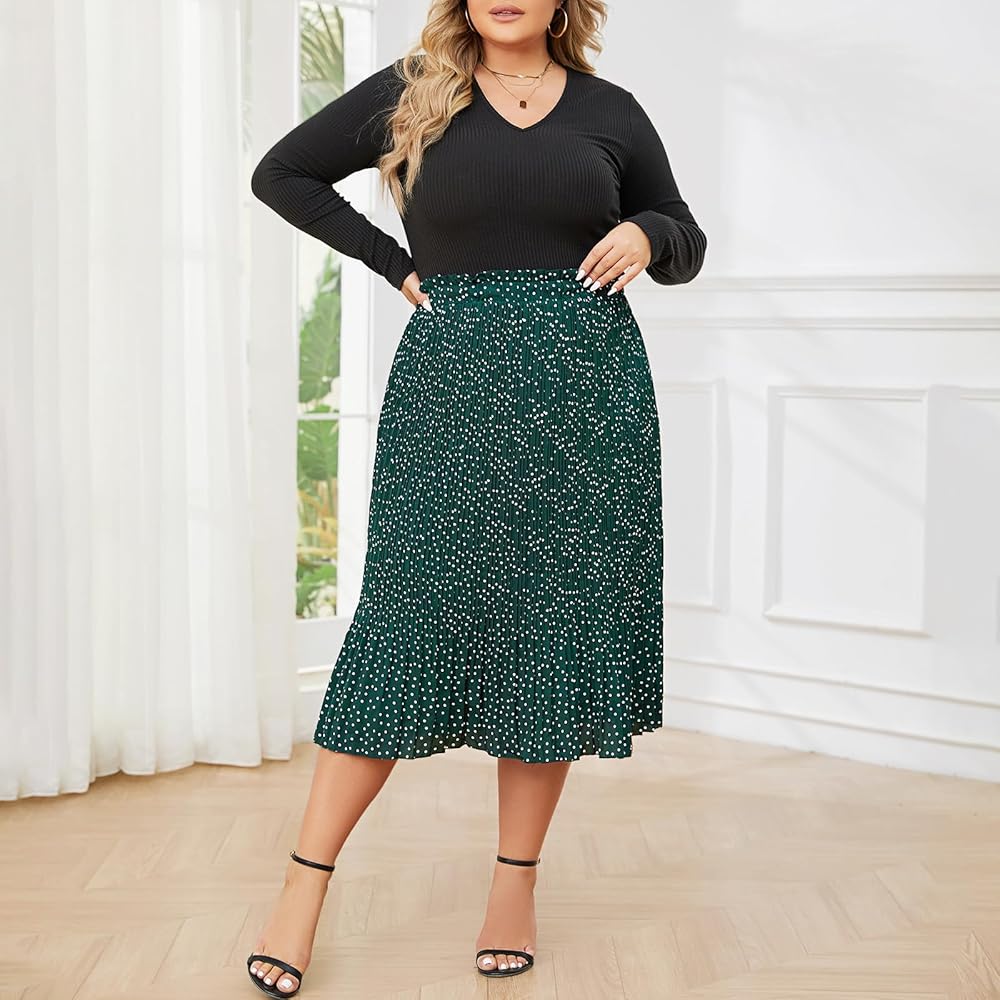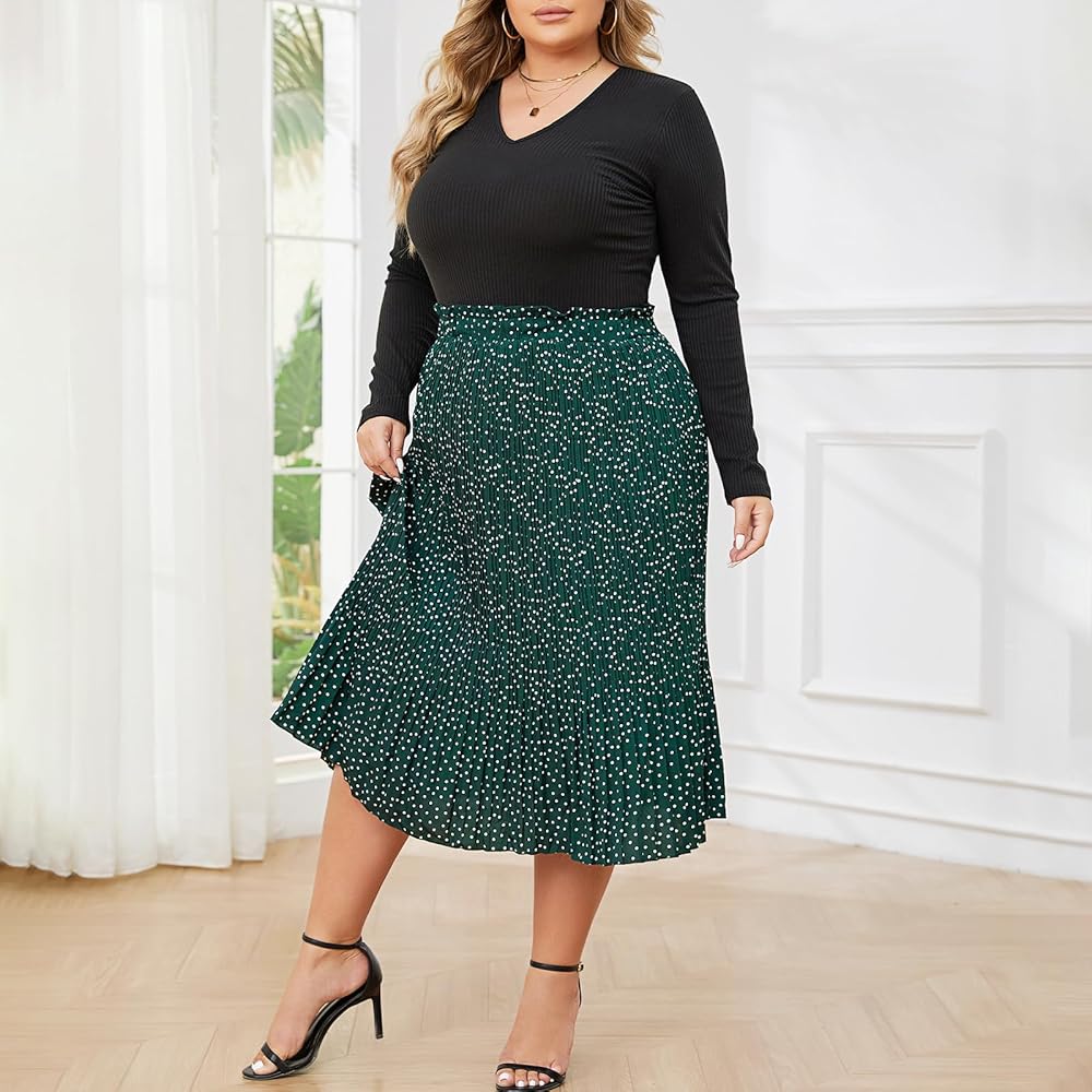 احتضني منحنيات جسمك بهذا الفستان المرقعة ذو الحجم الكبير، وهو مثالي للمعلمين ومصمم لفصلي الخريف والربيع. يتميز هذا الفستان بجزء علوي محبوك وتنورة منقطة بطيات، وهو ينضح بالأناقة والأناقة. تمتعي بالراحة والأناقة مع هذا الفستان متوسط الطول.