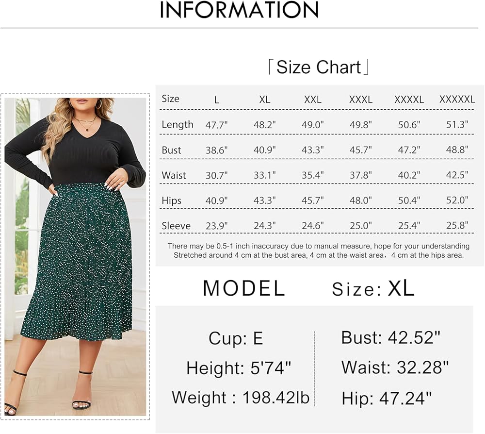 العناية بهذا الفستان ذو الأكمام الطويلة المتعرجة والمقاس الكبير أمر سهل للغاية. ما عليك سوى غسله في الغسالة بالماء البارد لإبقائه منتعشًا وحيويًا. قبل الطلب، راجع جدول المقاسات الخاص بنا للحصول على مقاس مثالي يبرز منحنياتك. احتضن جمالك وأدلي ببيان في كل مناسبة.
