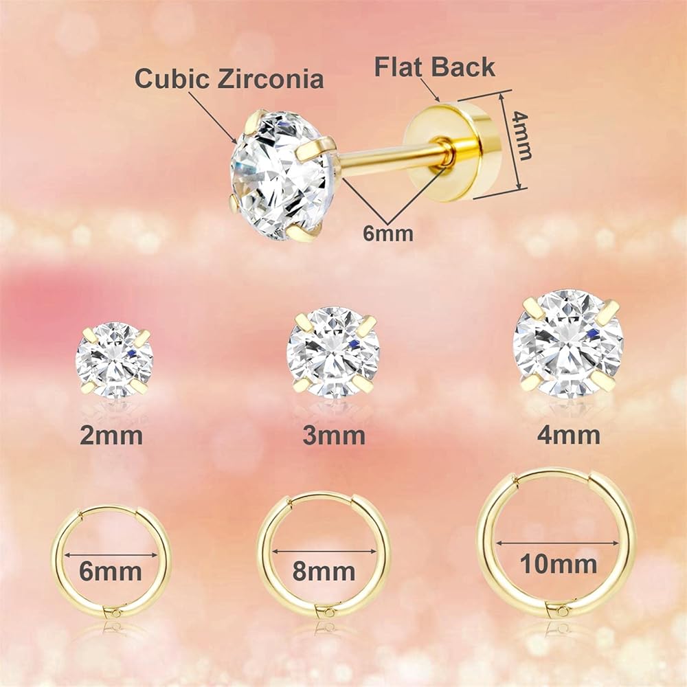 【حجم الأقراط الخلفية المسطحة 】: هذه الأقراط الزركونيا المكعبة بقطر 2،3،4 مم، أقراط ذهبية غضروفية خفيفة الوزن، أقراط حلزونية سهلة الارتداء وفعالة في منع السقوط.