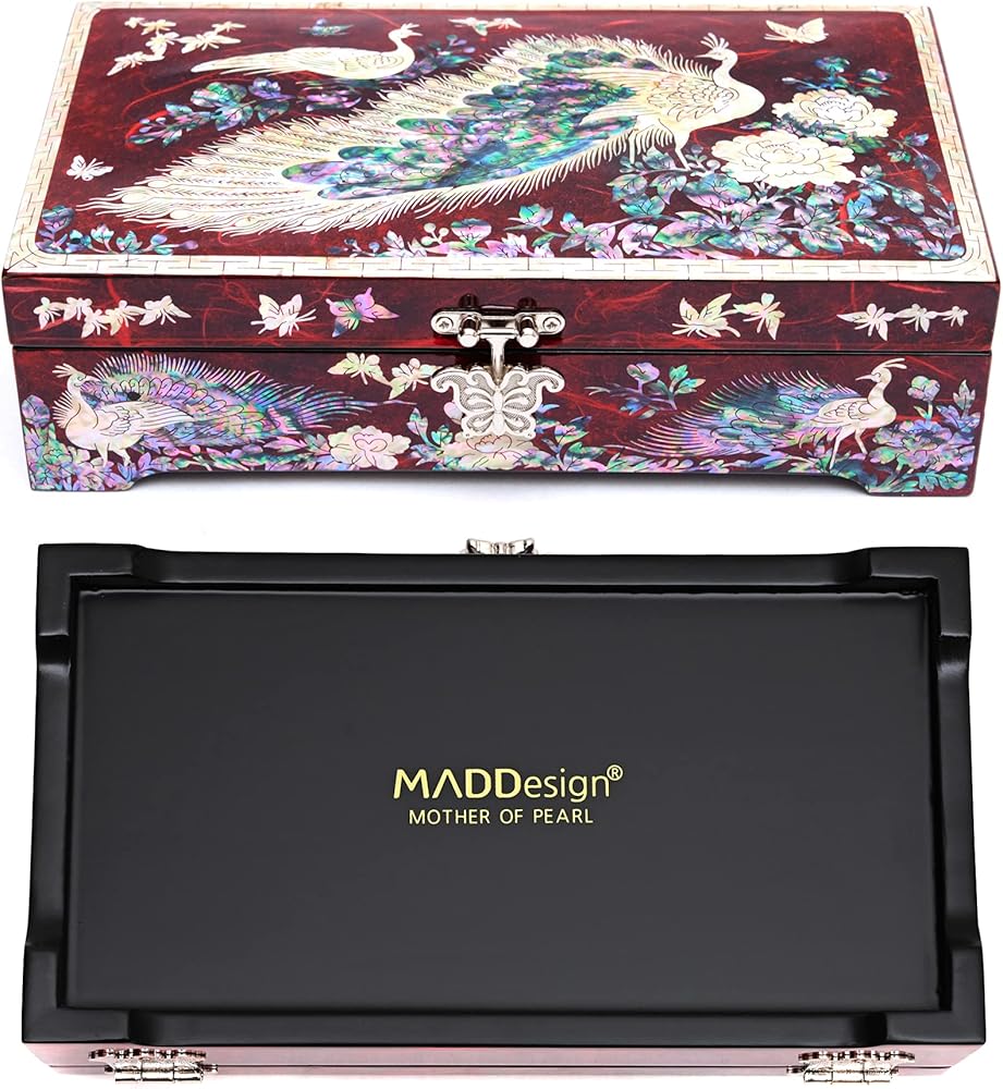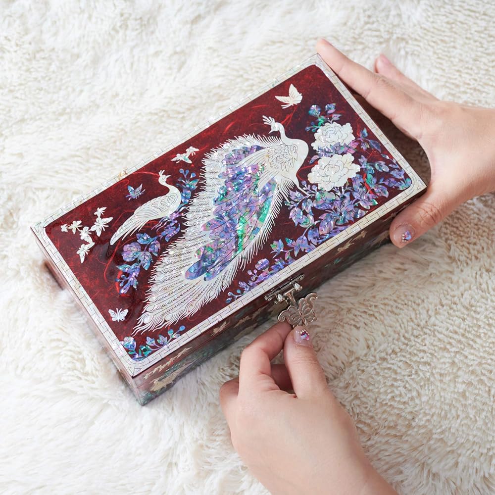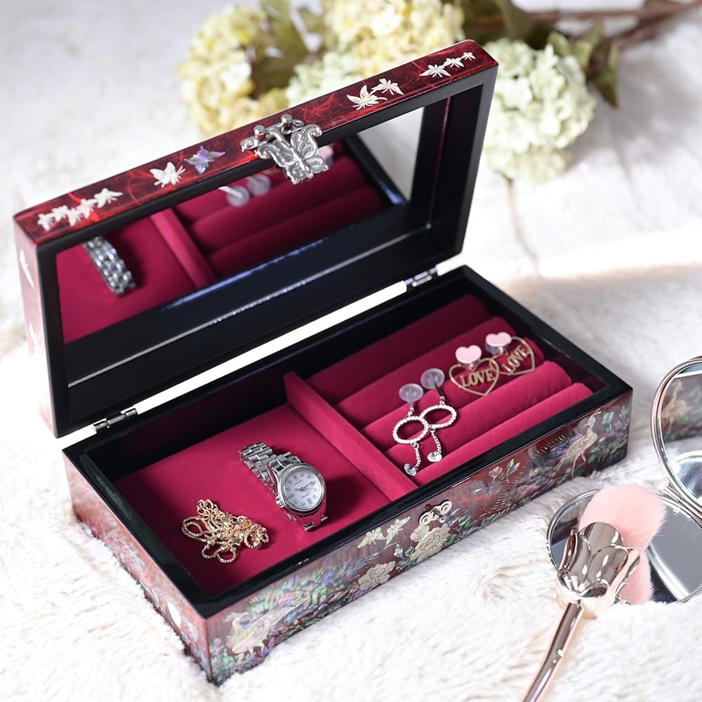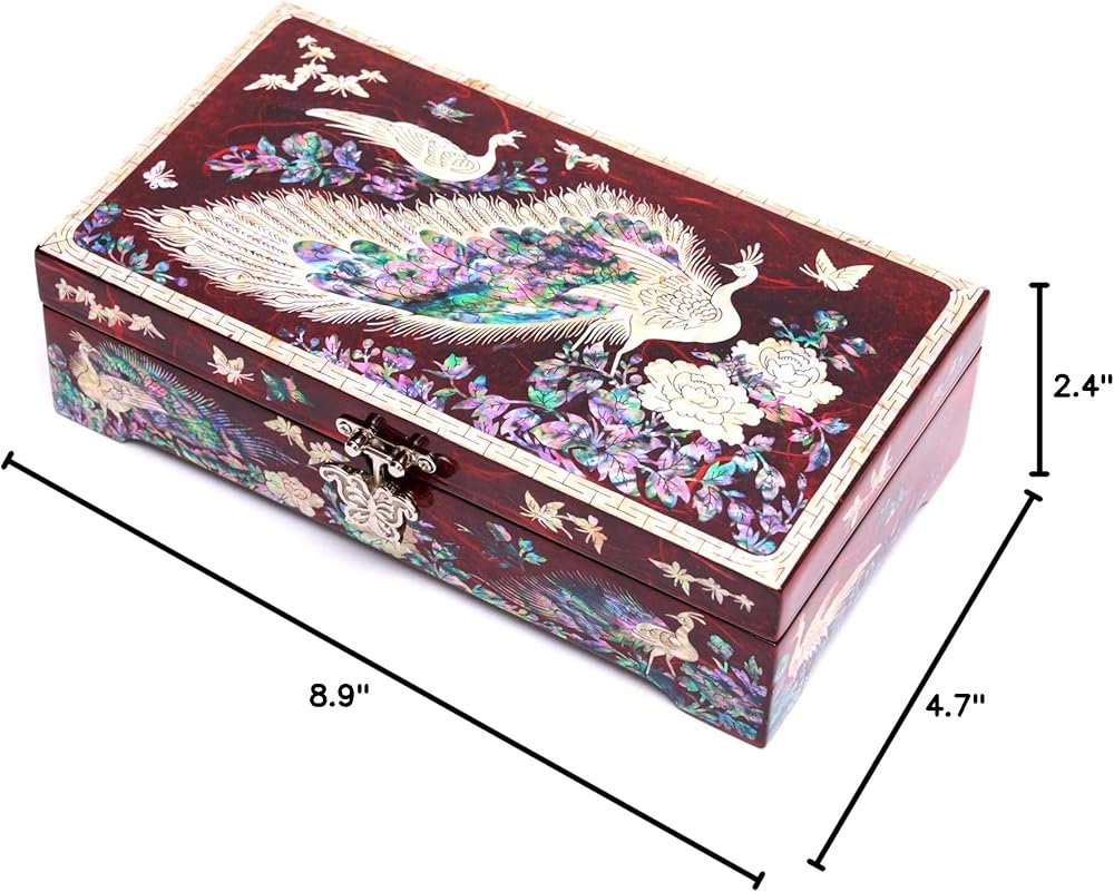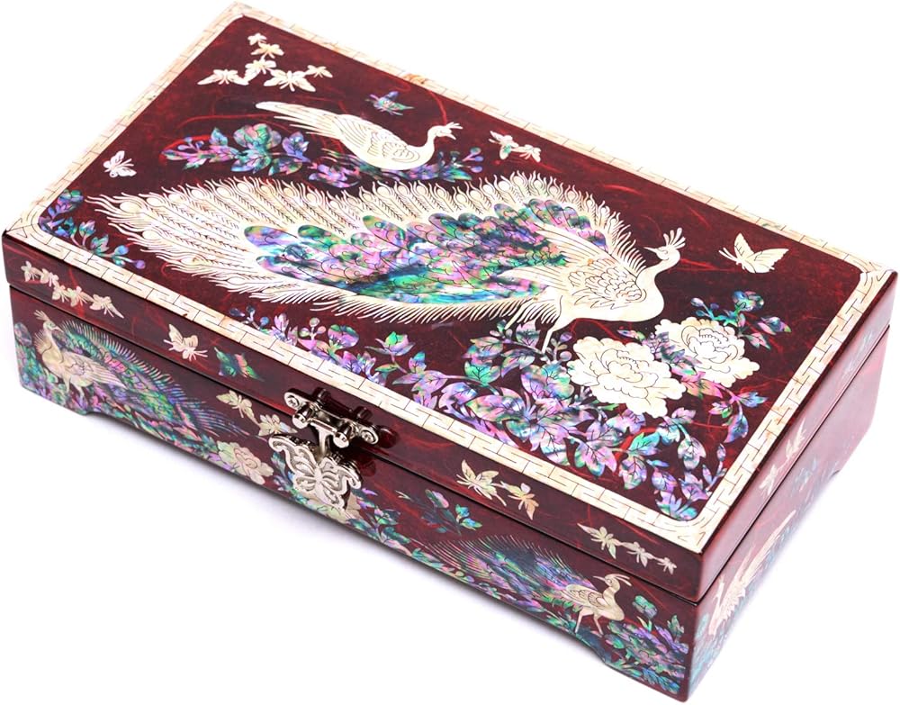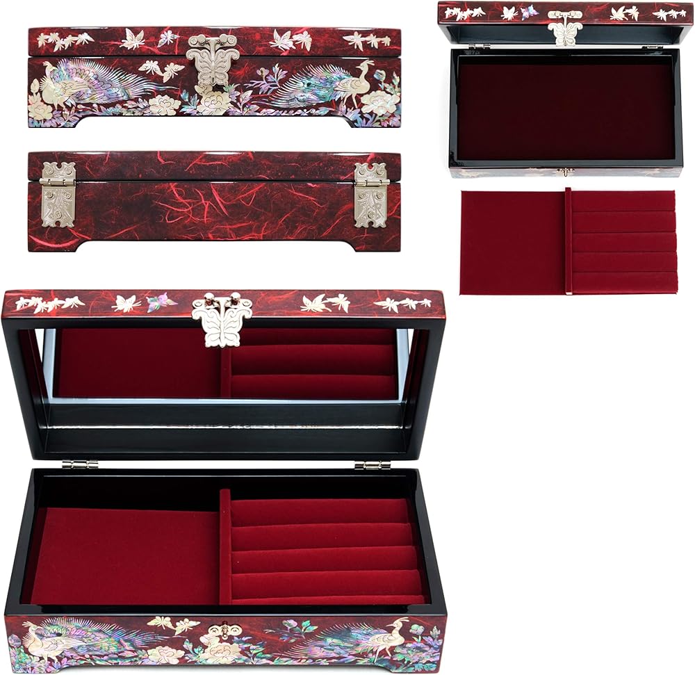 - منظم حلقات صندوق المجوهرات الكوري التقليدي المصنوع يدويًا صناعة صدفة البحر من أم اللؤلؤ