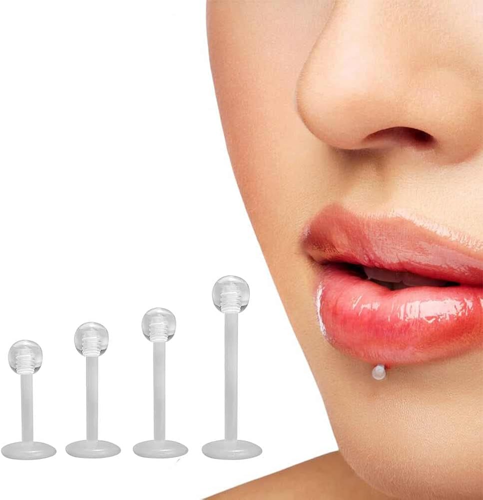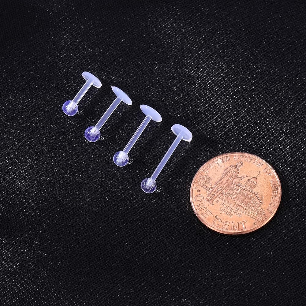 Clear Piercing Jewelry Size: (1.2mm) 16g lip piercing, Top Ball Size: 3mm, Flat back bar length: 6mm/8mm/10mm/12mm. Suitable for multiple piercing places like Lip labret; Medusa; Monroe; Daith; Rook; Helix; Conch; Tragus Piercing Earring Jewelry.