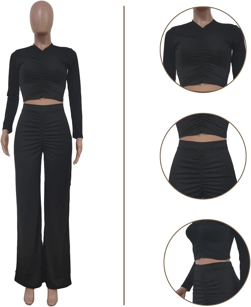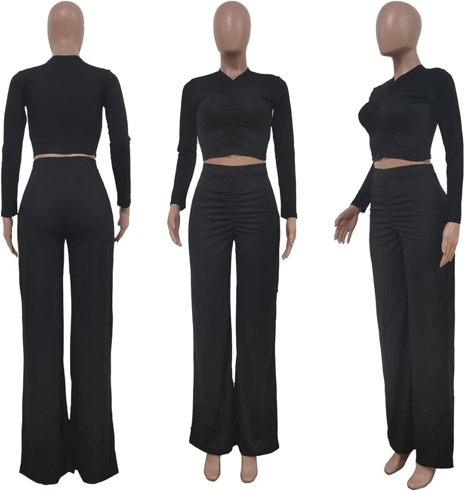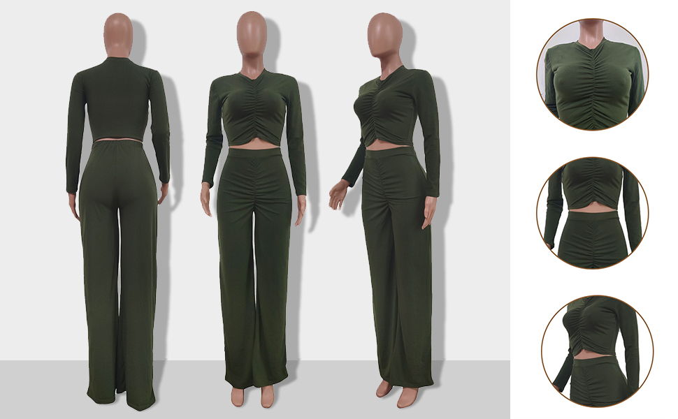 • Feature: 2pc set, solid color, crewneck, pull on closure, ribbed and pleated design, ruched 2 piece pants set, slim fit,long sleeve shirt, workout tops with palazzo pants for women dressy, very cute, fashion and elegant.