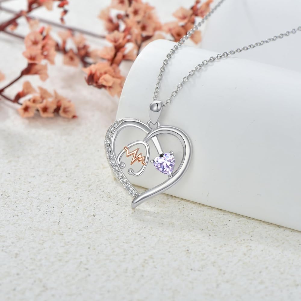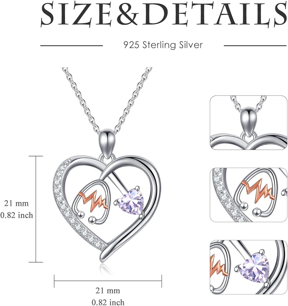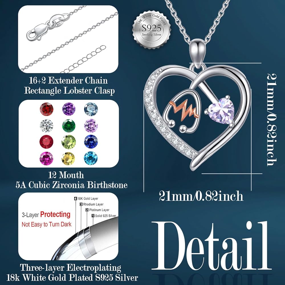 💖【حجر ميلاد لامع】: يتم إبراز قلادة حجر ميلاد سماعة الطبيب هذه بواسطة أحجار الحب الرقيقة. يتم اختيار كل حجر بخت بعناية وتقطيعه لإظهار لونه الفريد والجميل. كل شخص لديه حجر البخت الخاص به الذي ينقل التمنيات الطيبة للحب والسعادة.