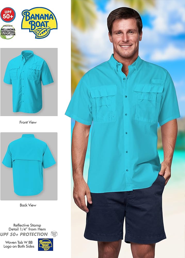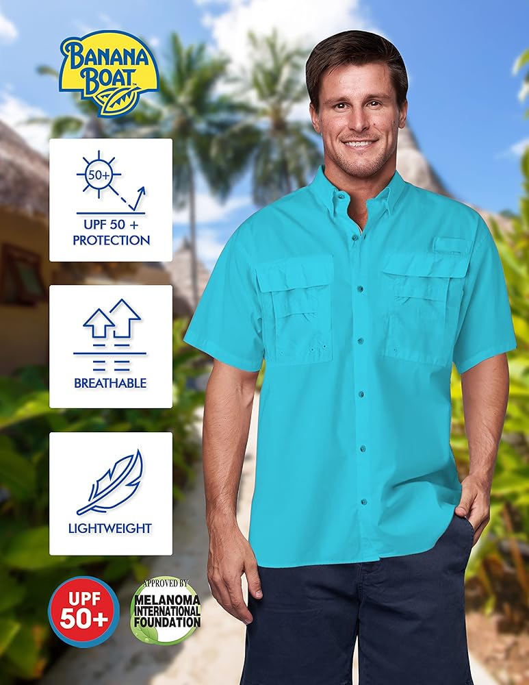 Banana Boat Mens Short Sleeve UPF 50+ Water proof | UV Protection | Wind proof | Breathable Fishing Shirt with Vented Back
