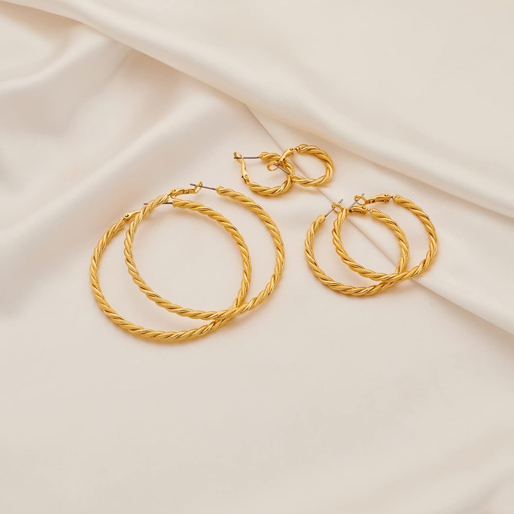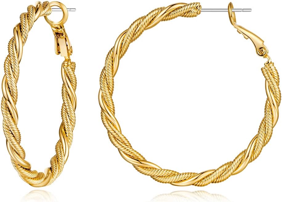 أقراط دائرية للنساء: نحن نصنع الأقراط بعمود من الفولاذ المقاوم للصدأ مما يجعلها لا تسبب الحساسية. انسَ جميع الأقراط الحلقية الرخيصة الأخرى التي قد تسبب تهيج الجلد والطفح الجلدي أو تتحول إلى اللون الأخضر بعد استخدامها بعد بضعة أيام. استمتع بجودتنا العالية المطلية بالذهب الحقيقي، ولن تسبب الحساسية لبشرتك الحساسة. الأقراط الذهبية مصنوعة من النحاس عالي الجودة وهي خالية من الرصاص والنيكل والكادميوم.