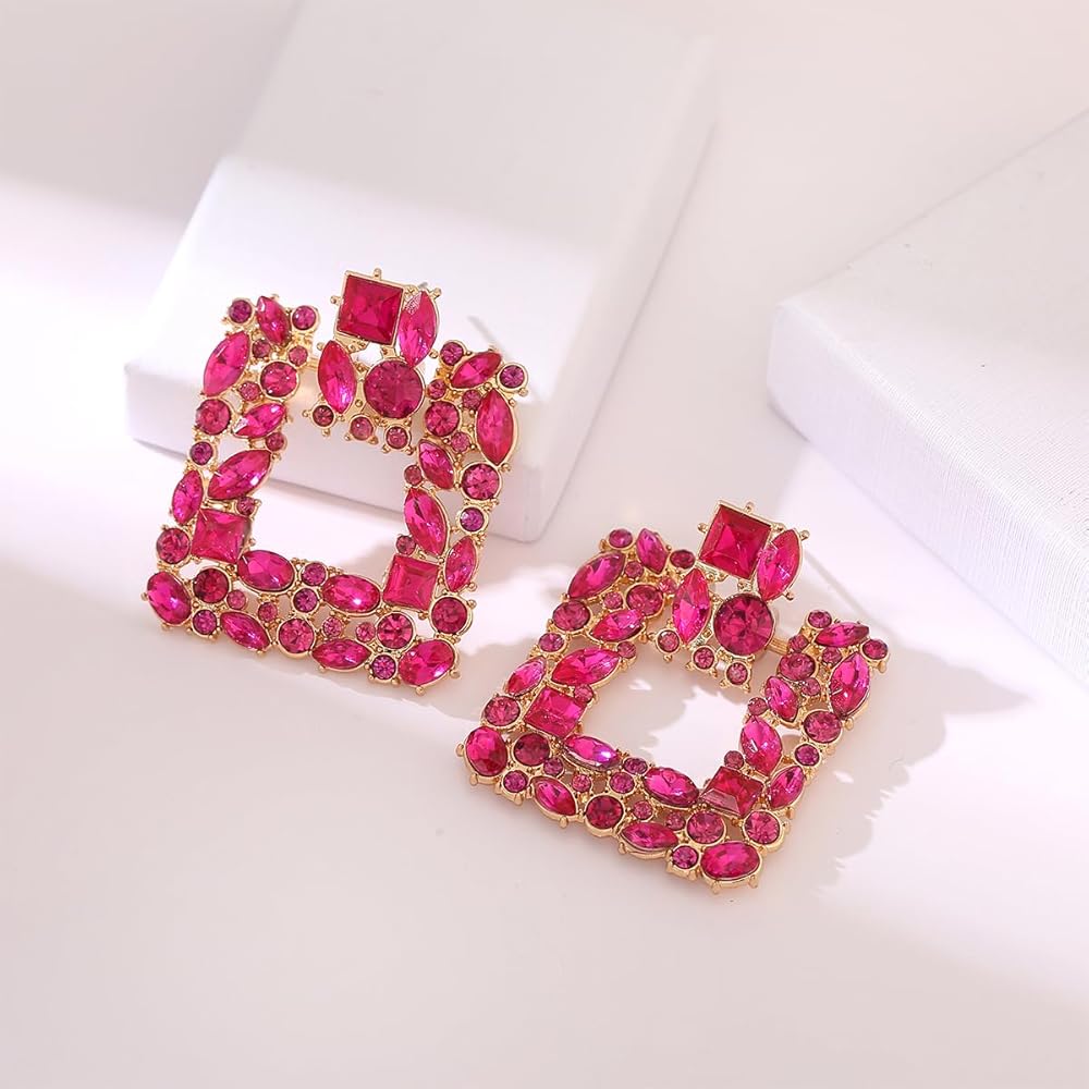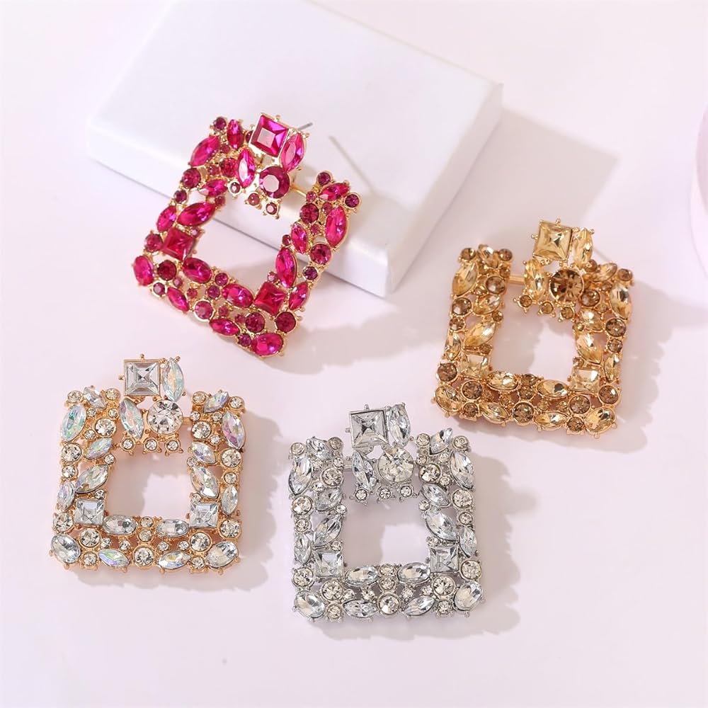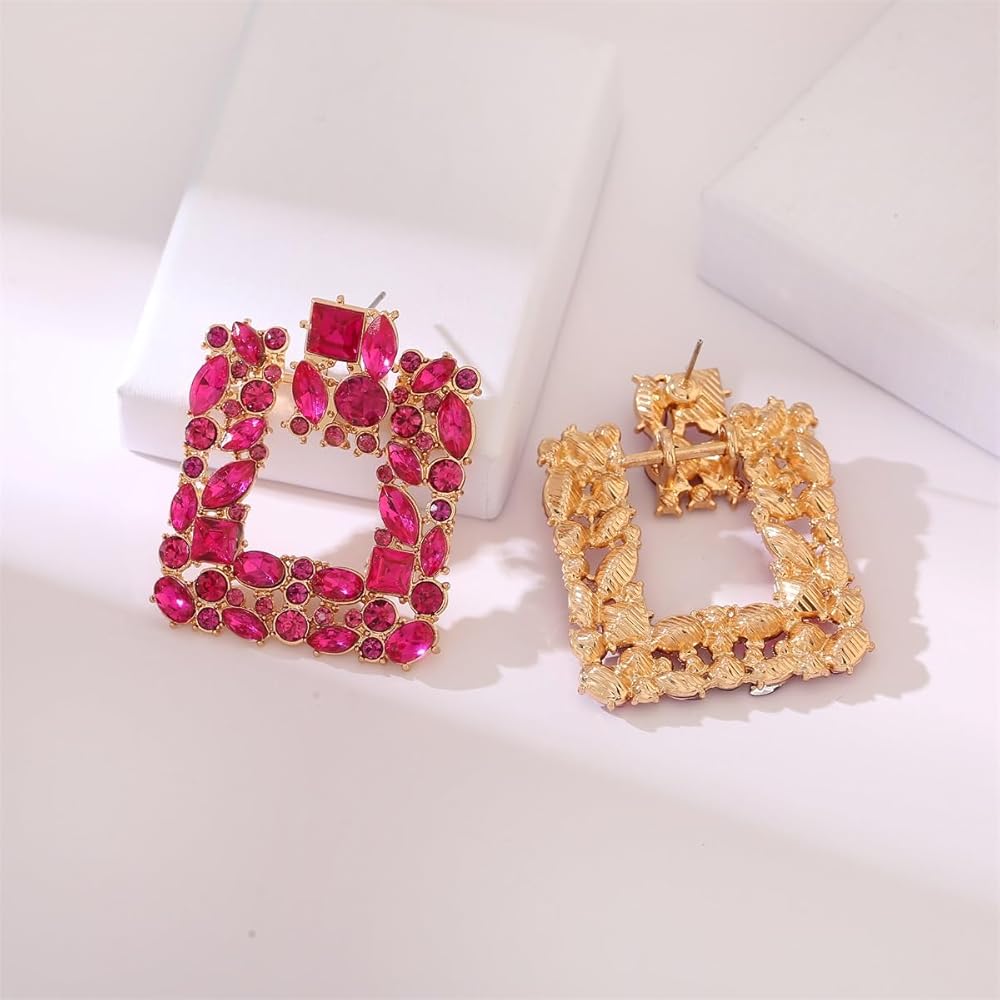 تصميم فريد: تتميز أقراطنا المربعة المصنوعة من حجر الراين بتصميم مربع مذهل، مزينة بمجموعة من أحجار الراين المتلألئة. مزيج الشكل الهندسي والأحجار المبهرة يخلق تأثيرًا بصريًا آسرًا، يلتقط الضوء من كل زاوية ويعكس مظهرًا رائعًا تألق.