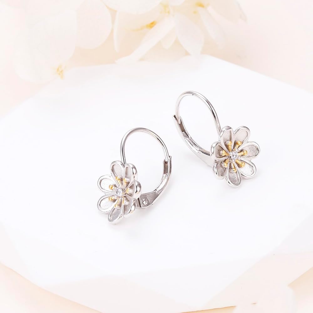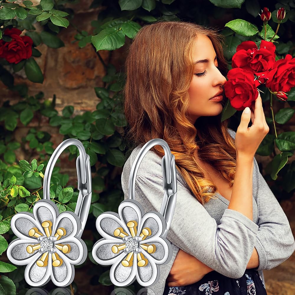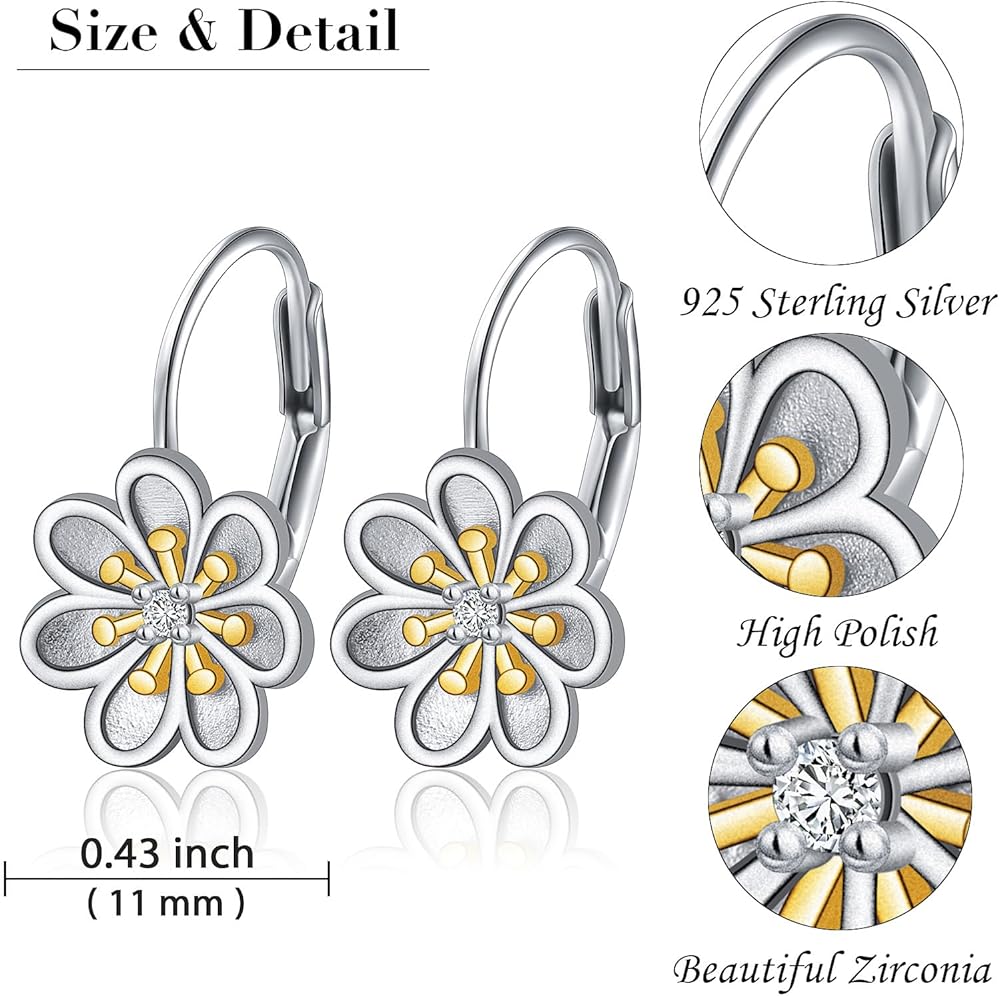 مادة لا تسبب الحساسية: أقراط الأقحوان مصنوعة من الفضة الإسترلينية عيار 925 المضادة للحساسية مع زركون مكعب، والتي لن يتغير لونها أو تصبح داكنة، ومقاومة، وخالية من النيكل، وخالية من الرصاص، وخالية من الكادميوم ولا تحتوي على أي عنصر يسبب الحساسية.