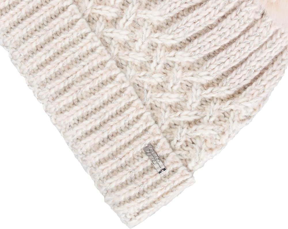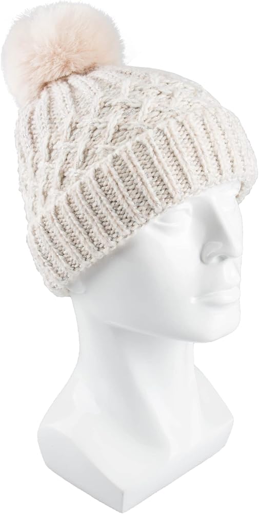 WARMTH AND COMFORT: Stay warm during the colder months while loving your look with this Jessica Simpson Speckled Knit Beanie with Fur Pom. This beanie flawlessly forms to your head and will quickly become a staple accessory to wear all winter long